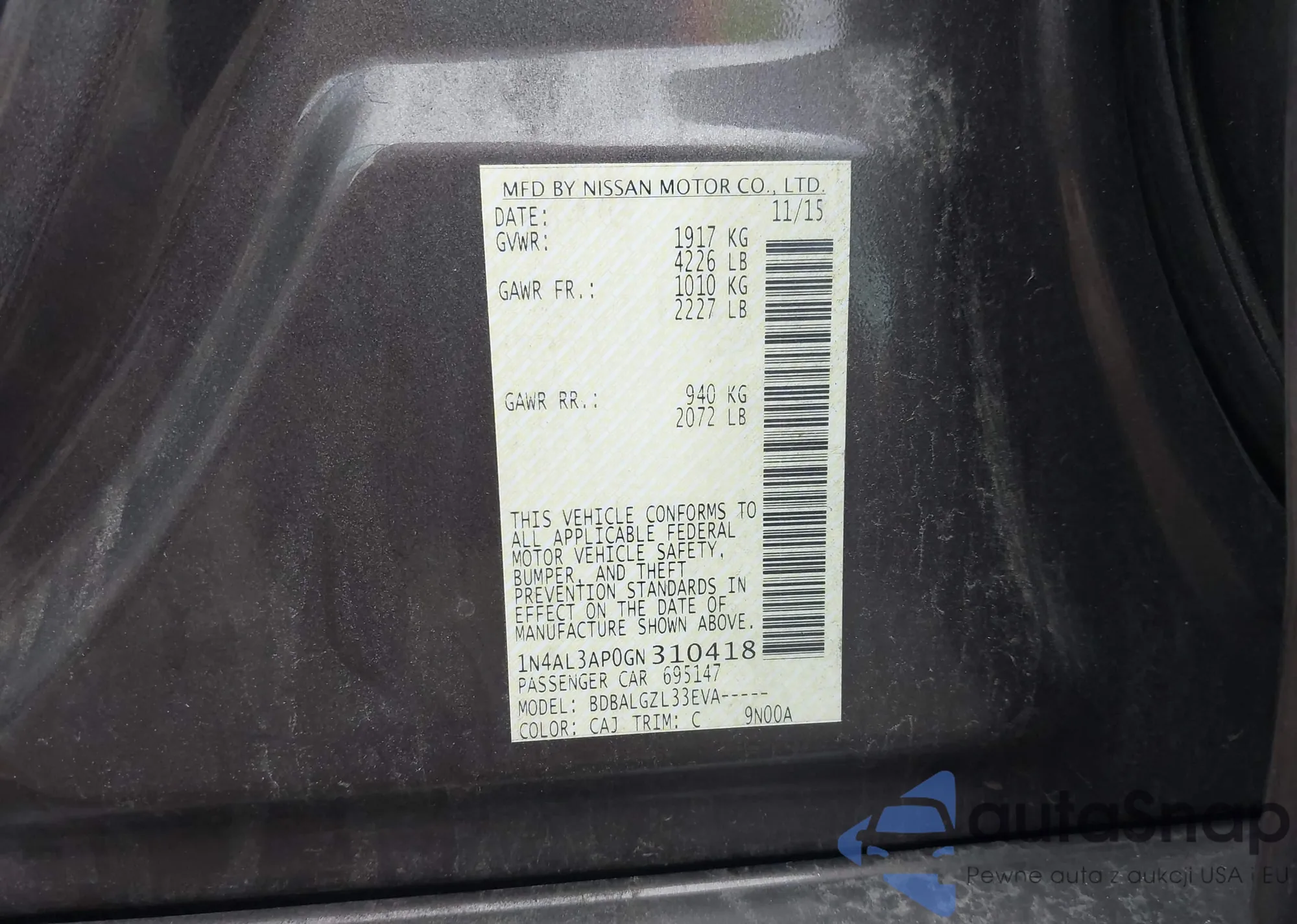 • VIN 1N4AL3AP0GN310418