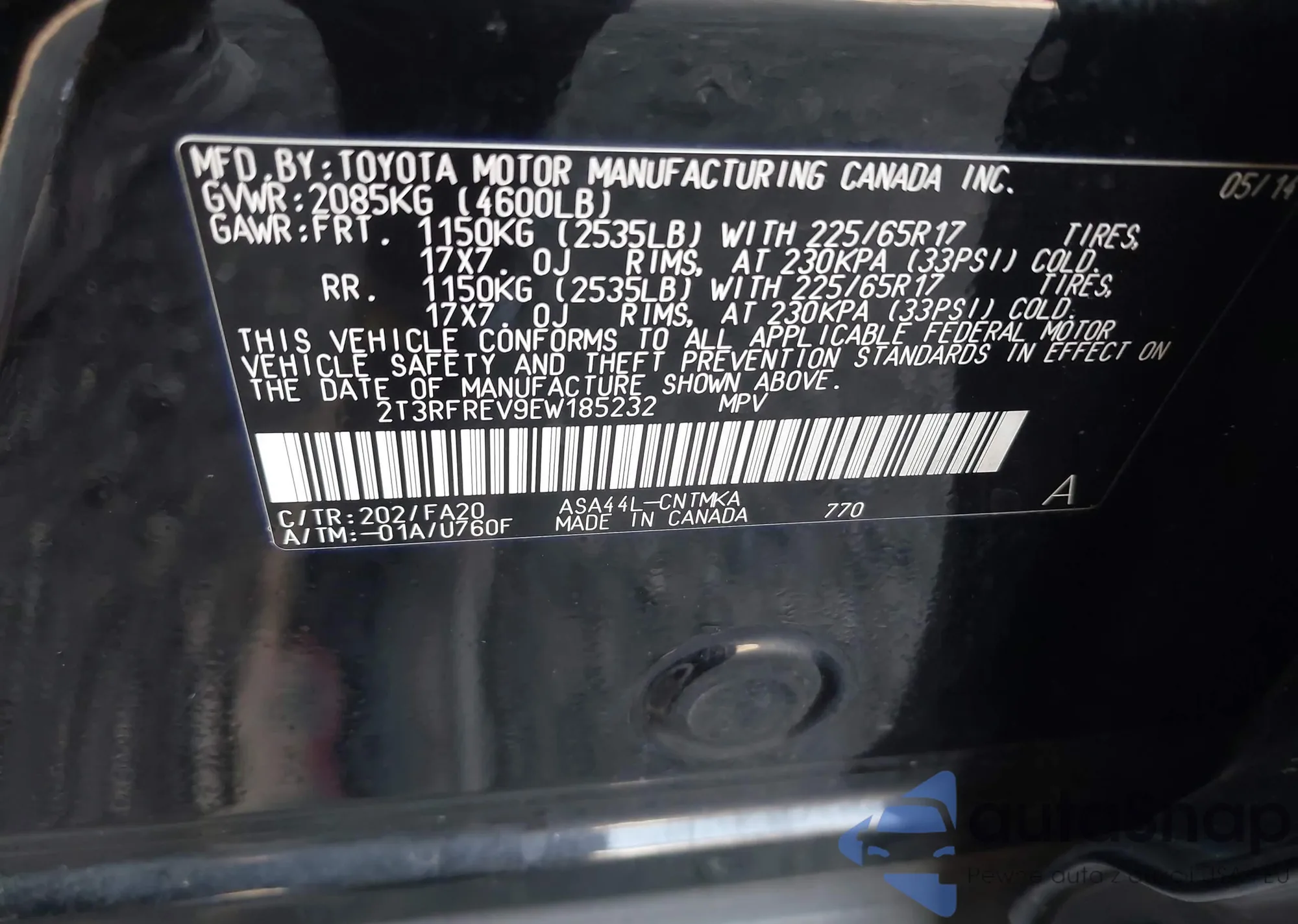• VIN 2T3RFREV9EW185232