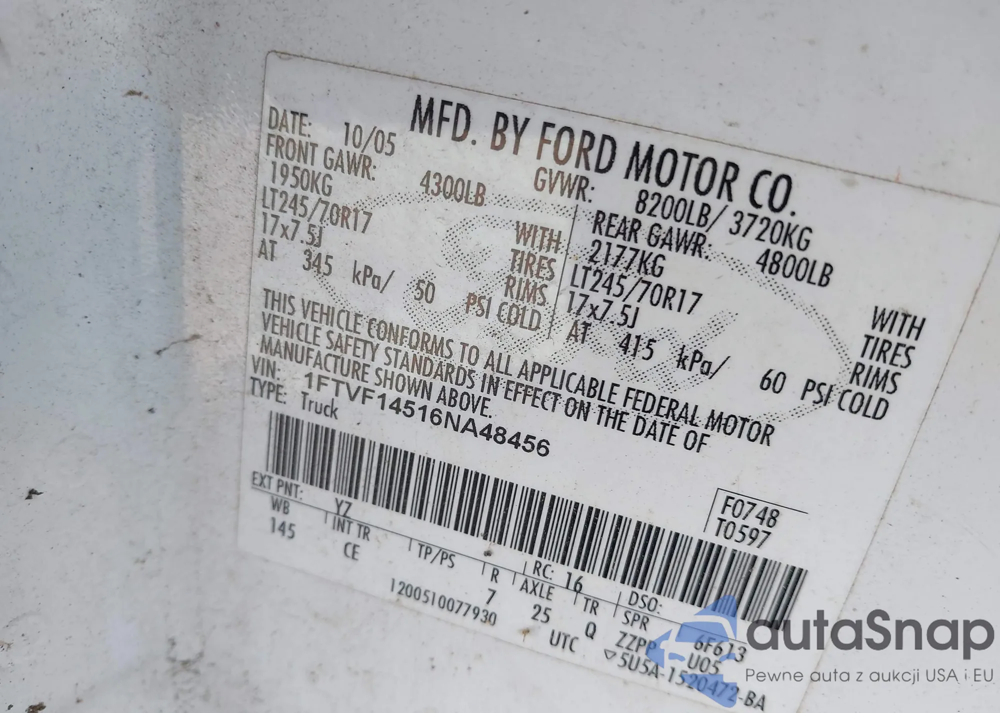 LOT: 43144940 VIN: WAUACGFF2F1005538