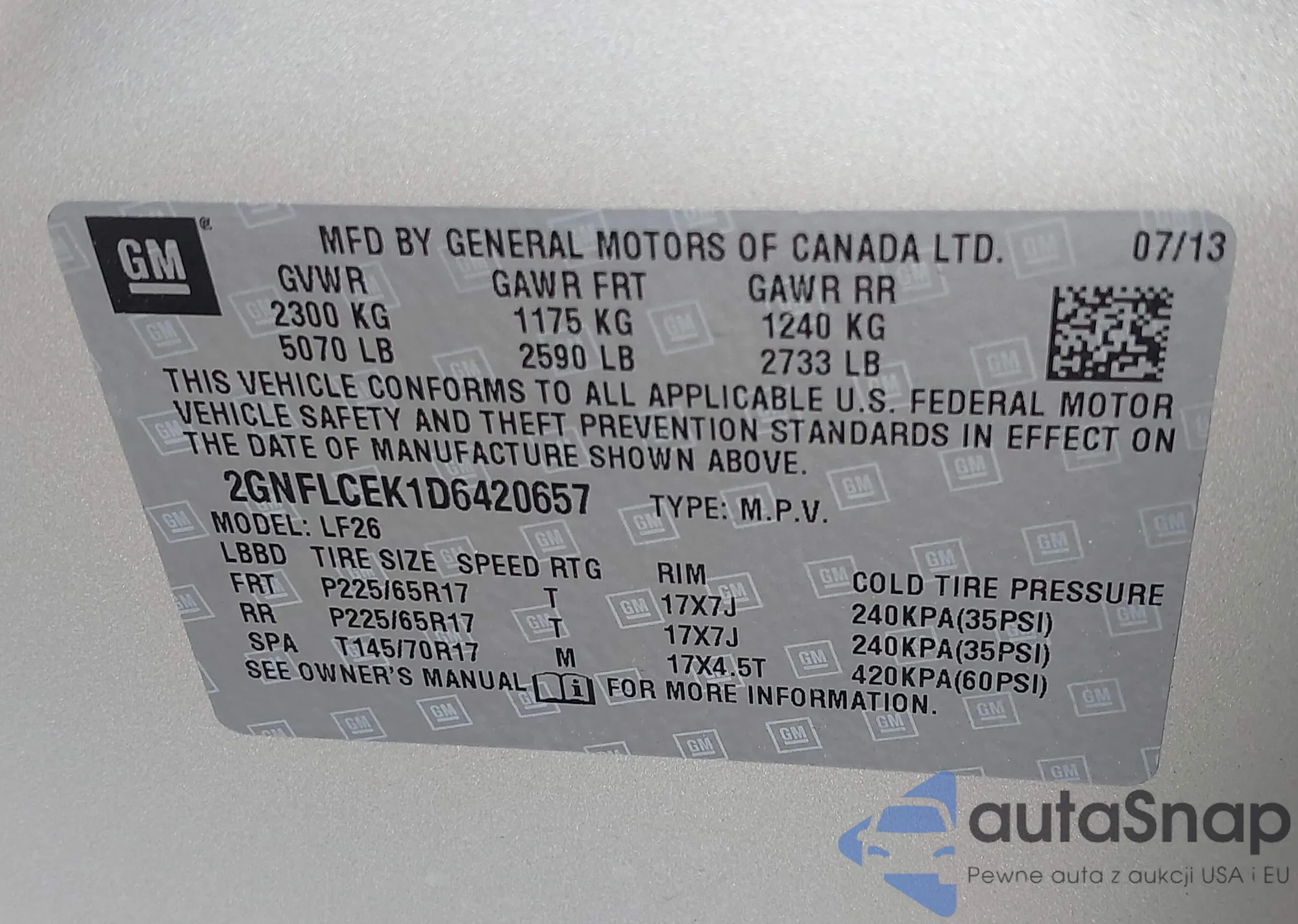 LOT: 43052598 VIN: 5Y2SP67049Z470702
