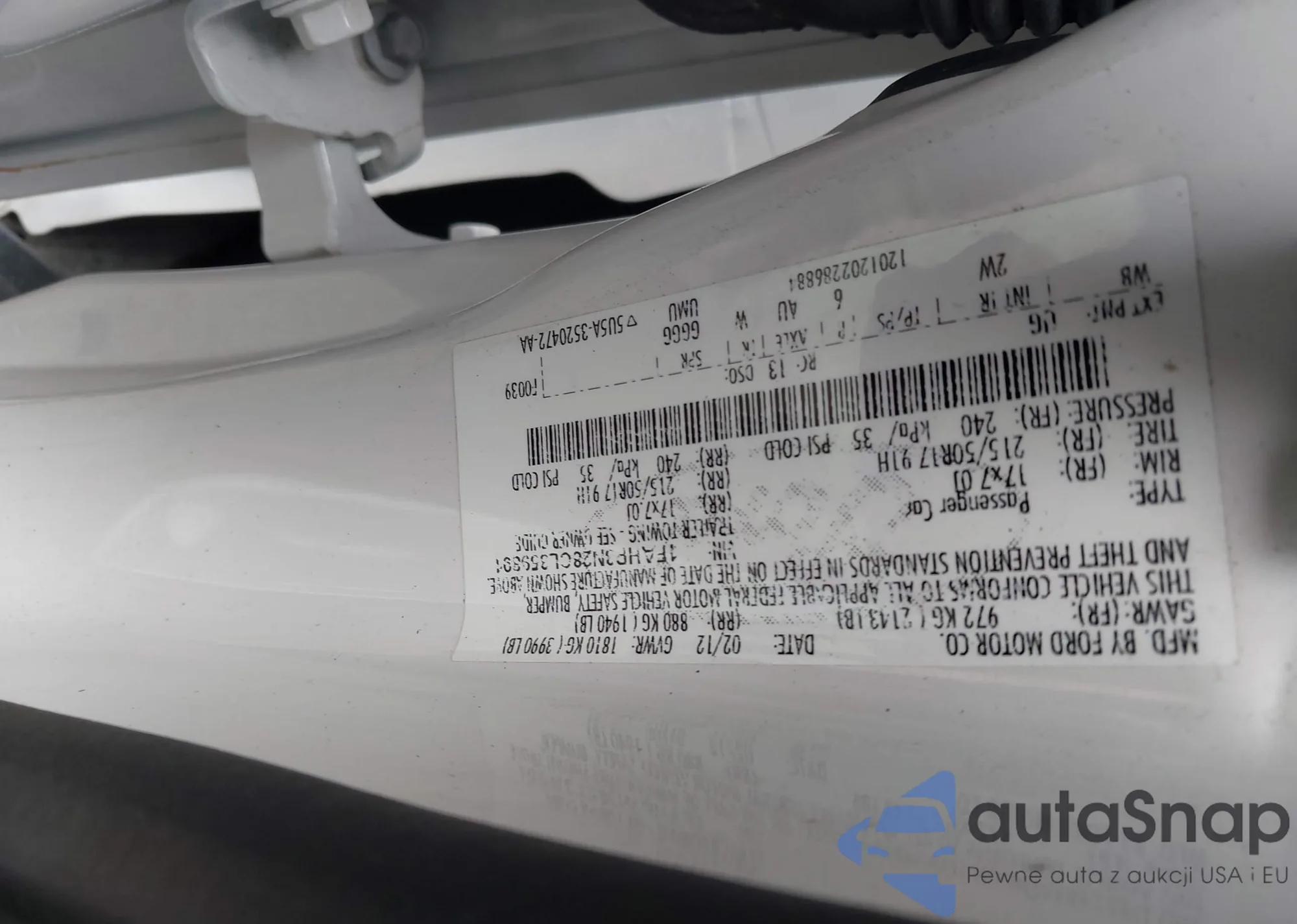 LOT: 42994432 VIN: 1FAHP3N28CL359891