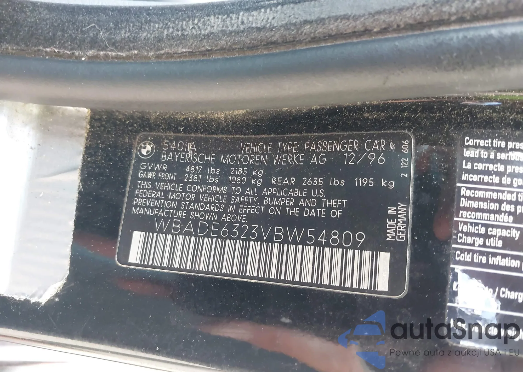 • VIN WBADE6323VBW54809