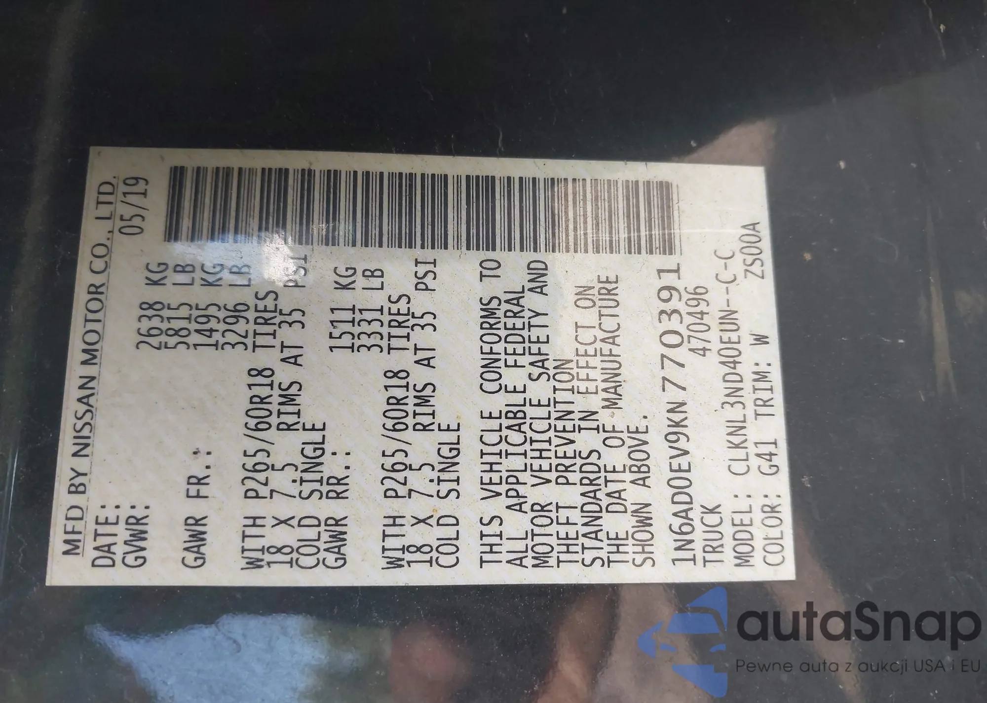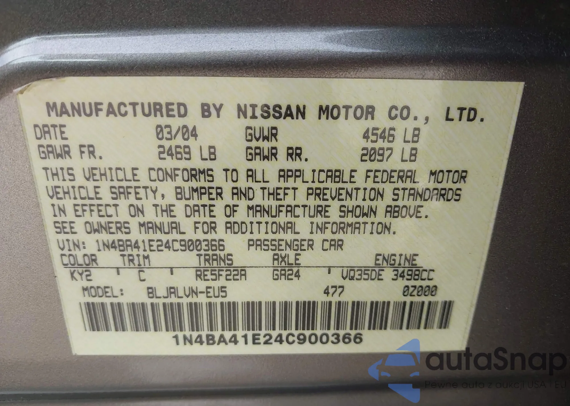 • VIN 1N4AA6CV2PC509307