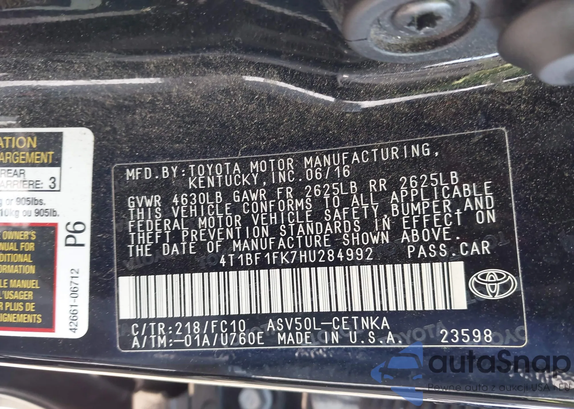 LOT: 42351543 VIN: 2T1BR32E97C766365