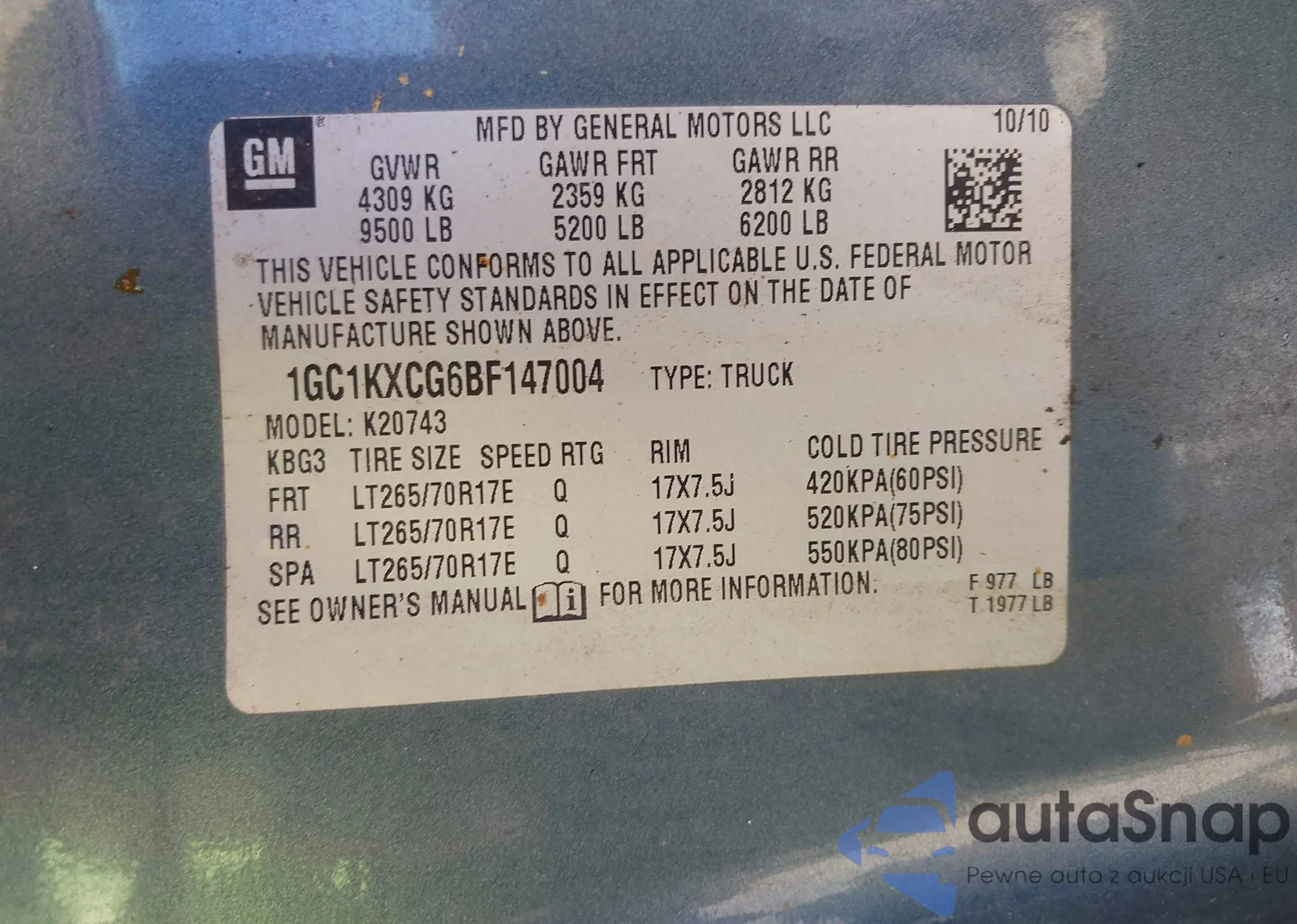 • VIN 1GC1KXCG6BF147004