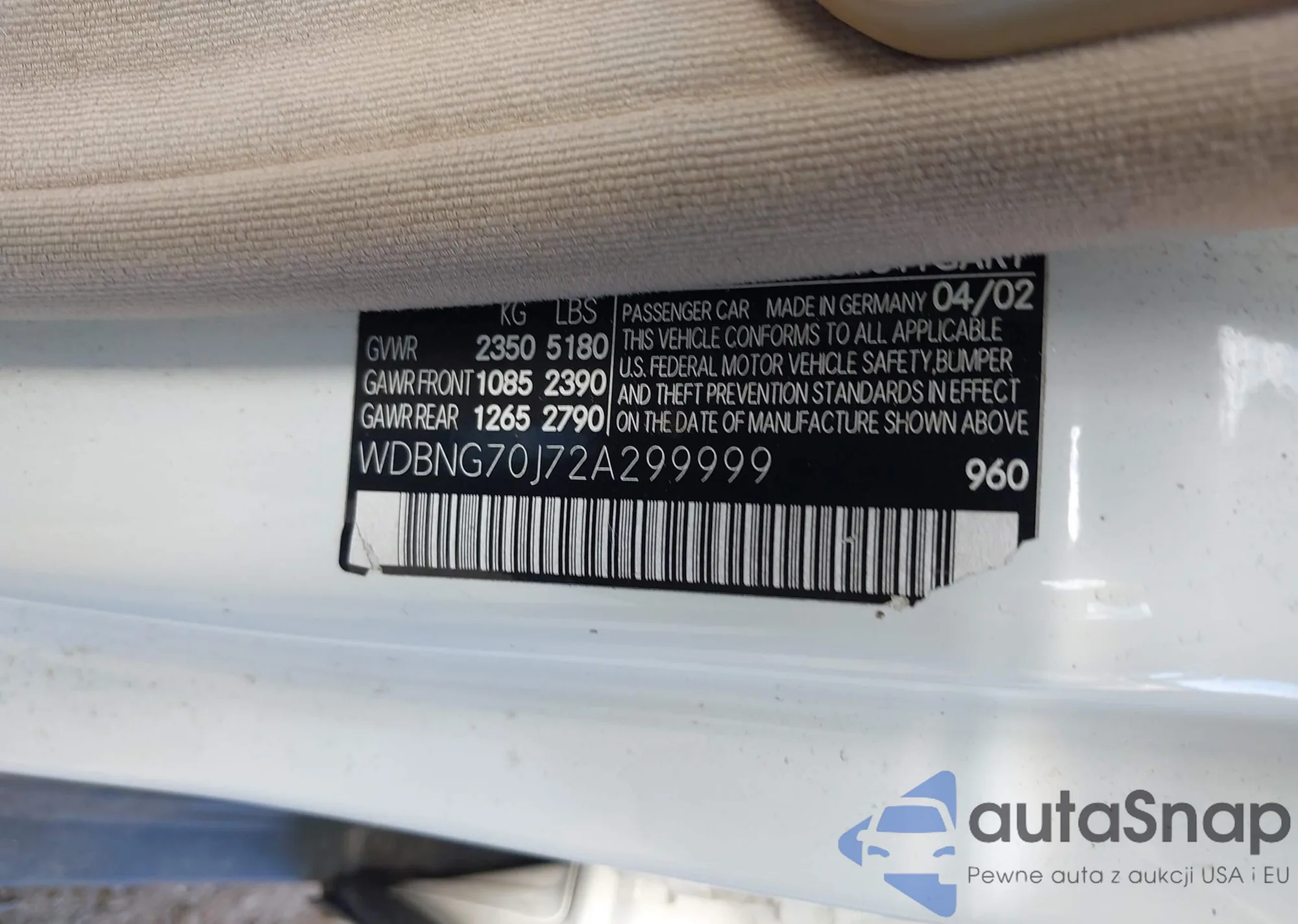 • VIN WDBNG70J72A299999