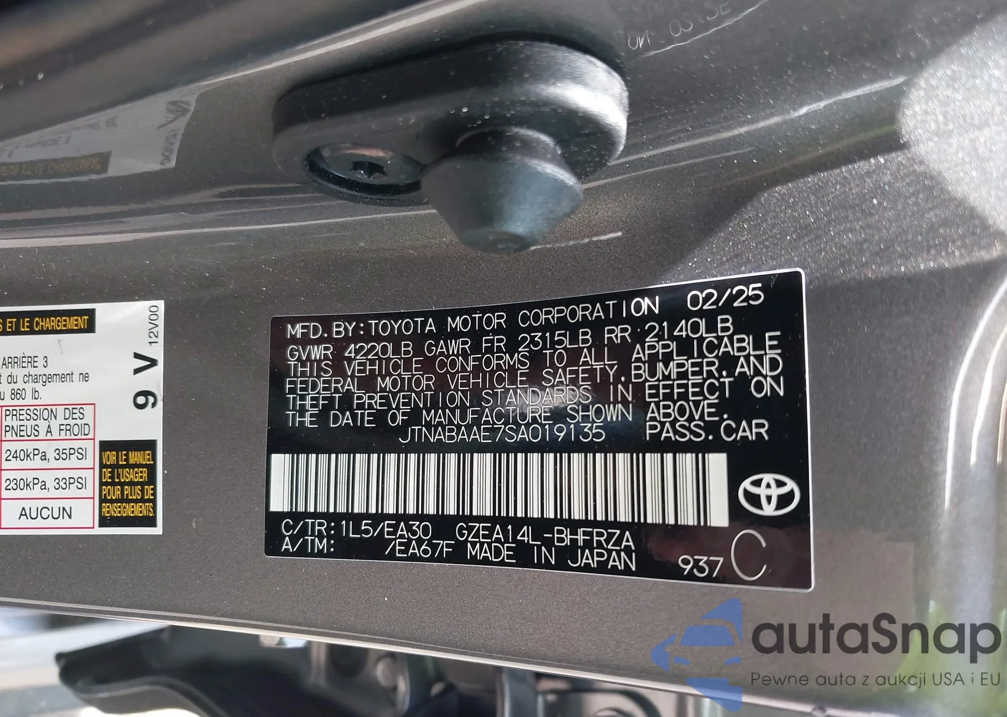 LOT: 42547757 VIN: JTNABAAE7SA019135