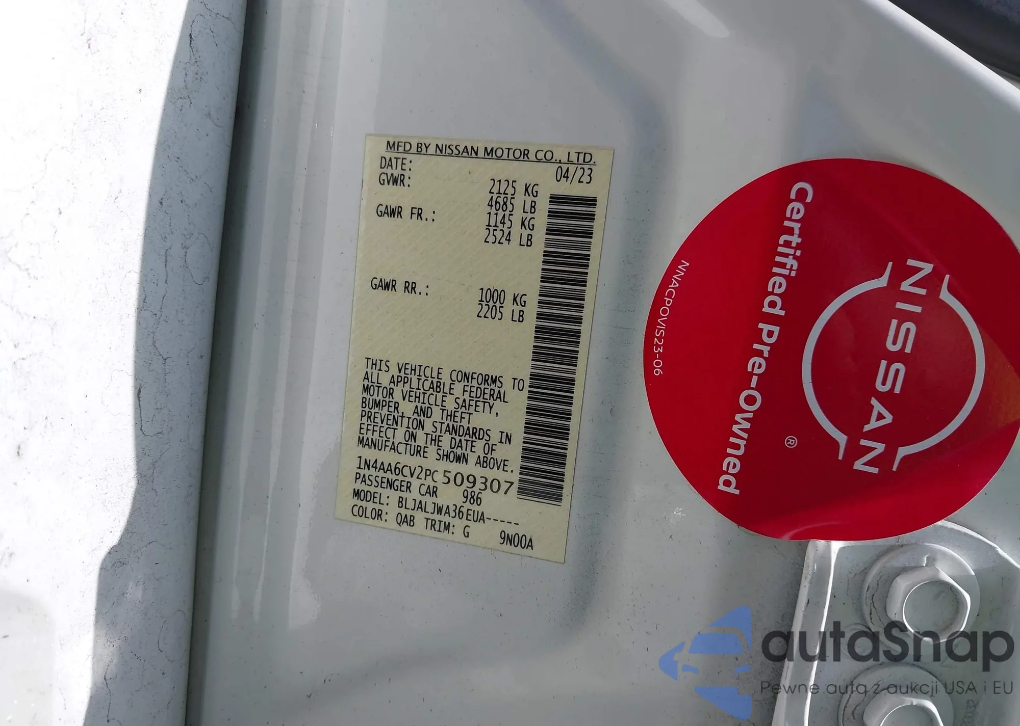 LOT: 42551919 VIN: 1N4AA6CV2PC509307