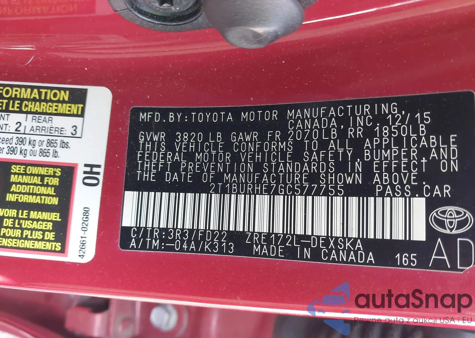 • VIN 2T1BURHE7GC577755