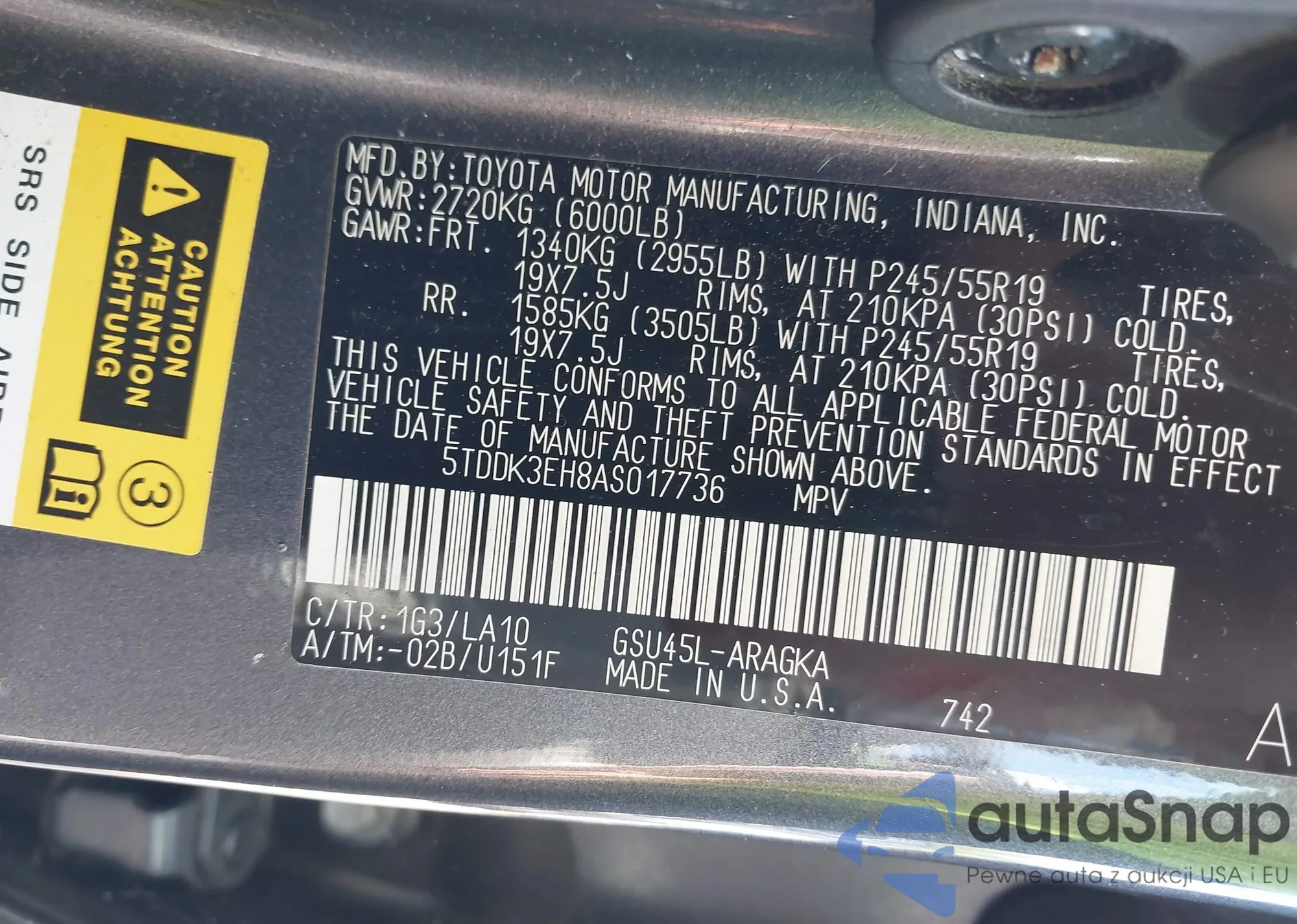 LOT: 42814024 VIN: 5TDDK3EH8AS017736