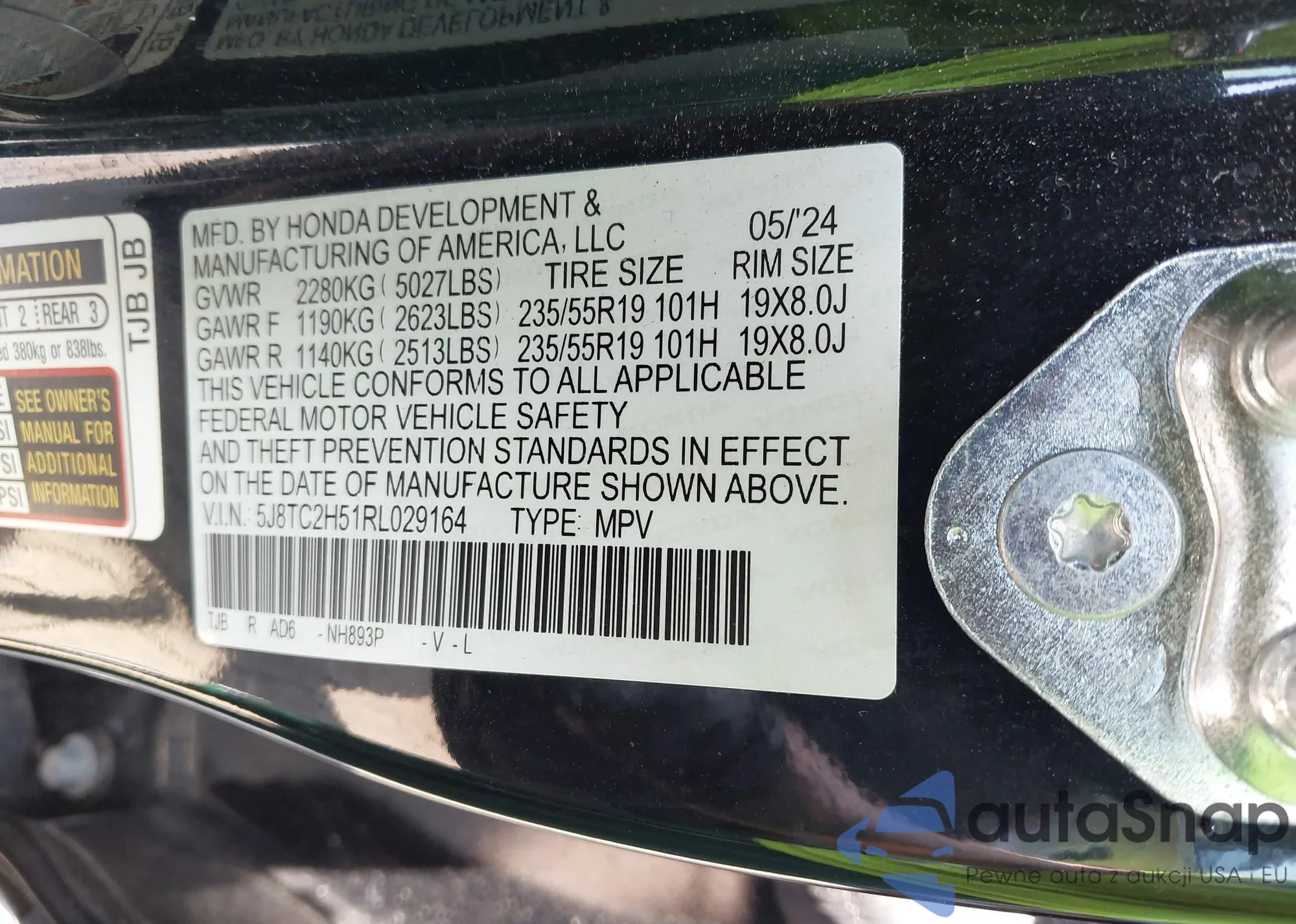 • VIN 5J8TC2H51RL029164