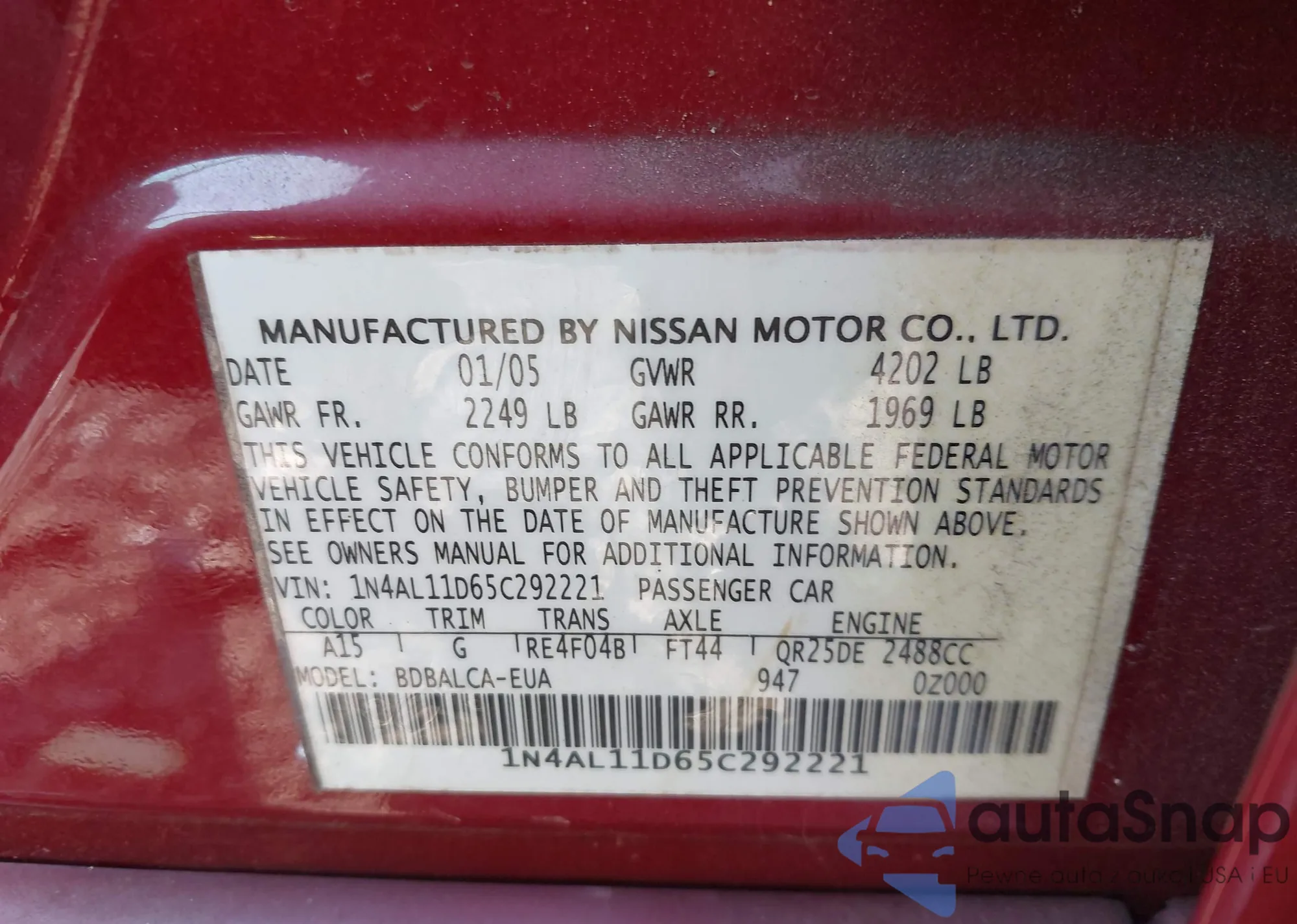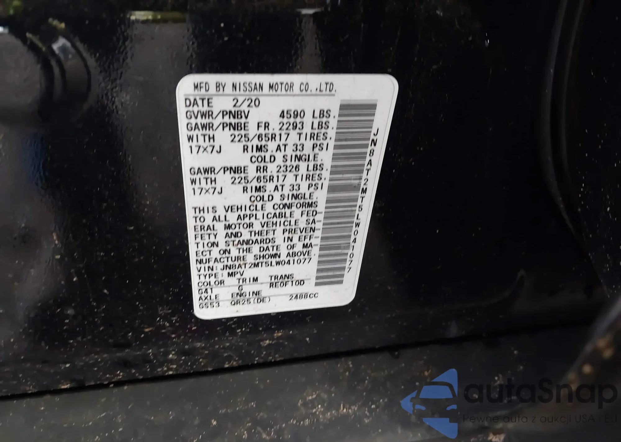• VIN 5N1AT3BB1MC792607