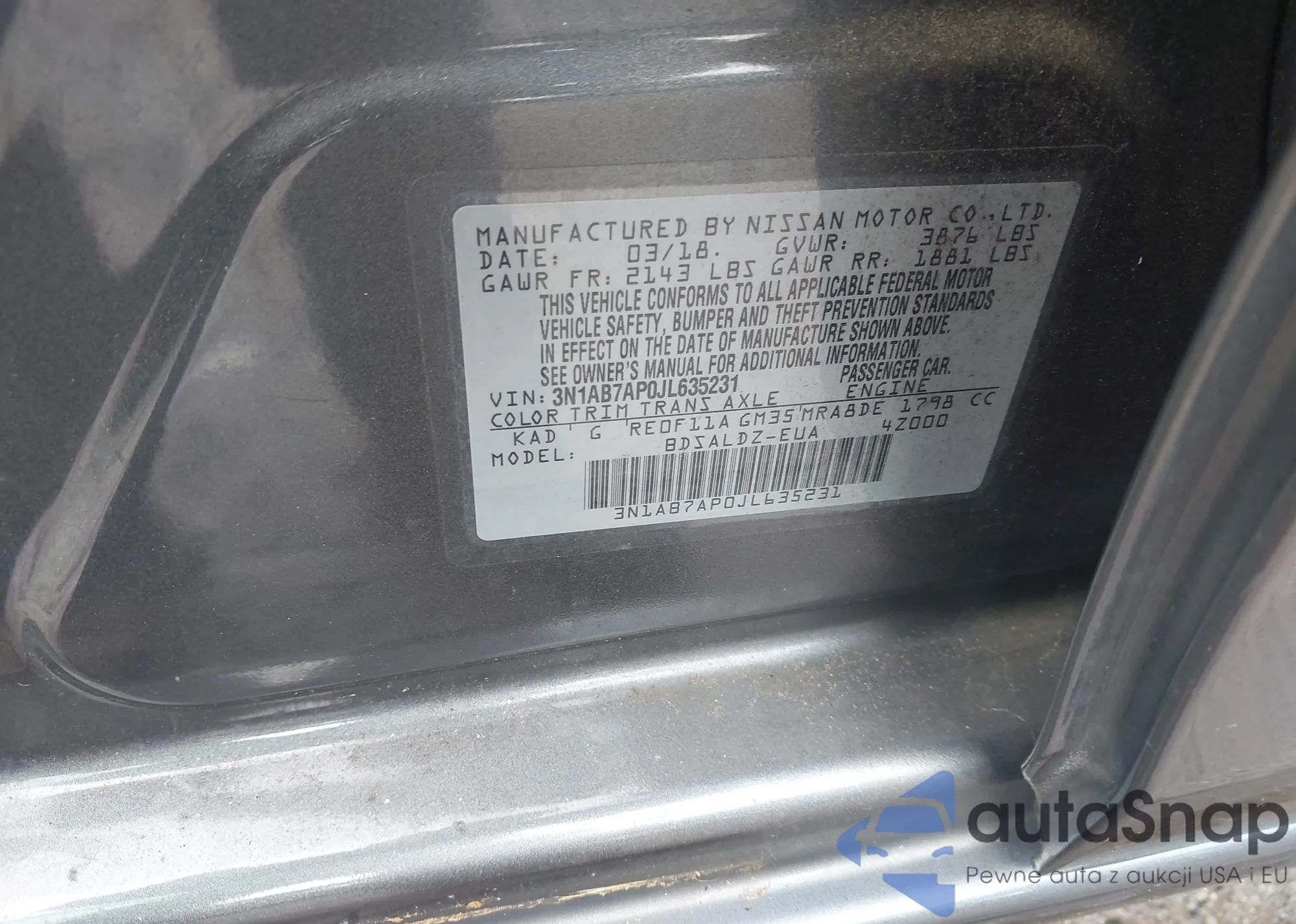 LOT: 43173131 VIN: 5N1AT3BB1MC792607