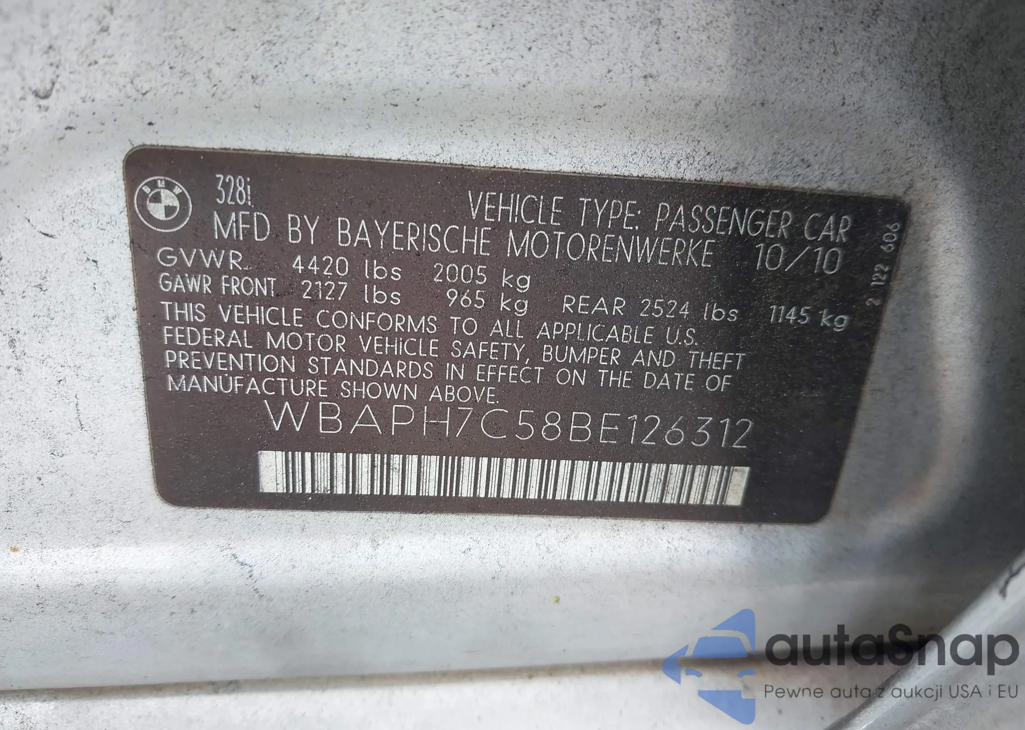 LOT: 42939540 VIN: WBAPH7C58BE126312