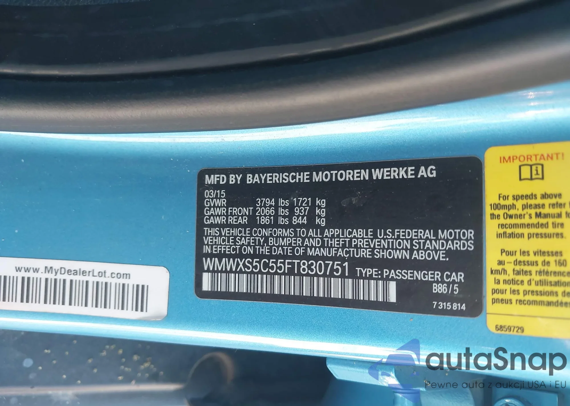 LOT: 43103158 VIN: WMWXS5C55FT830751