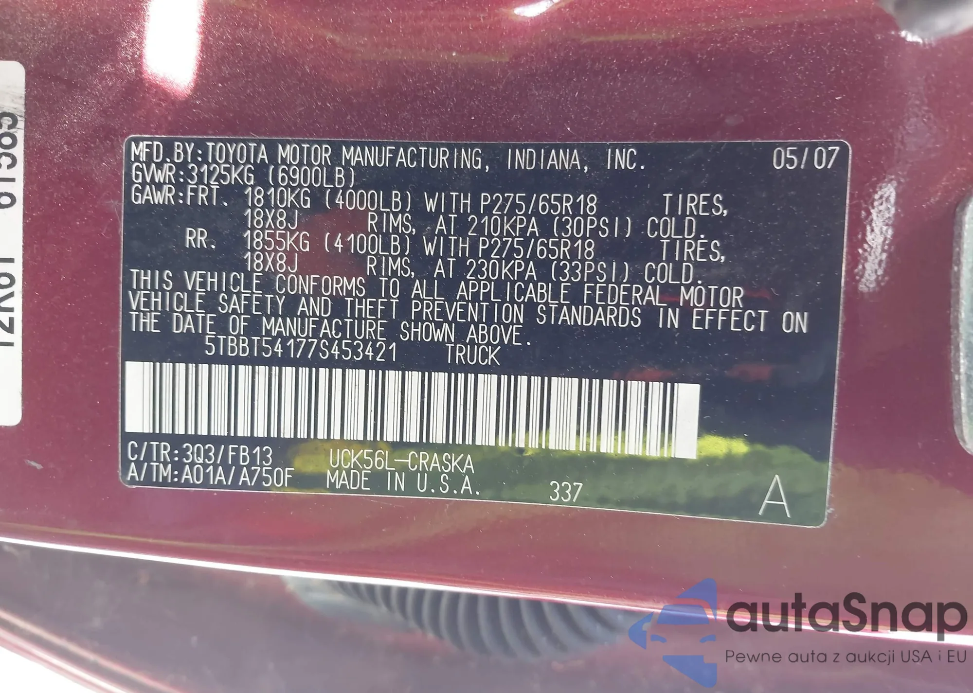 LOT: 43131109 VIN: 5TBBT54177S453421