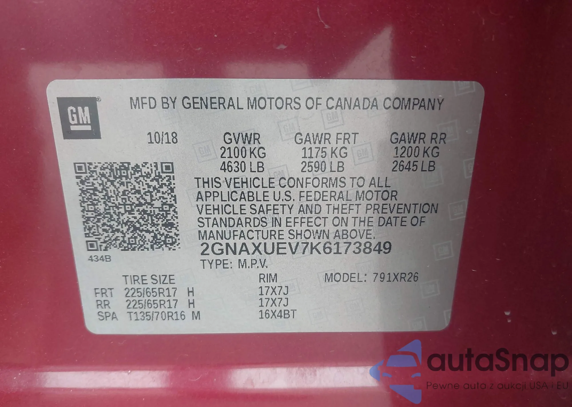 • VIN 2GNAXUEV7K6173849