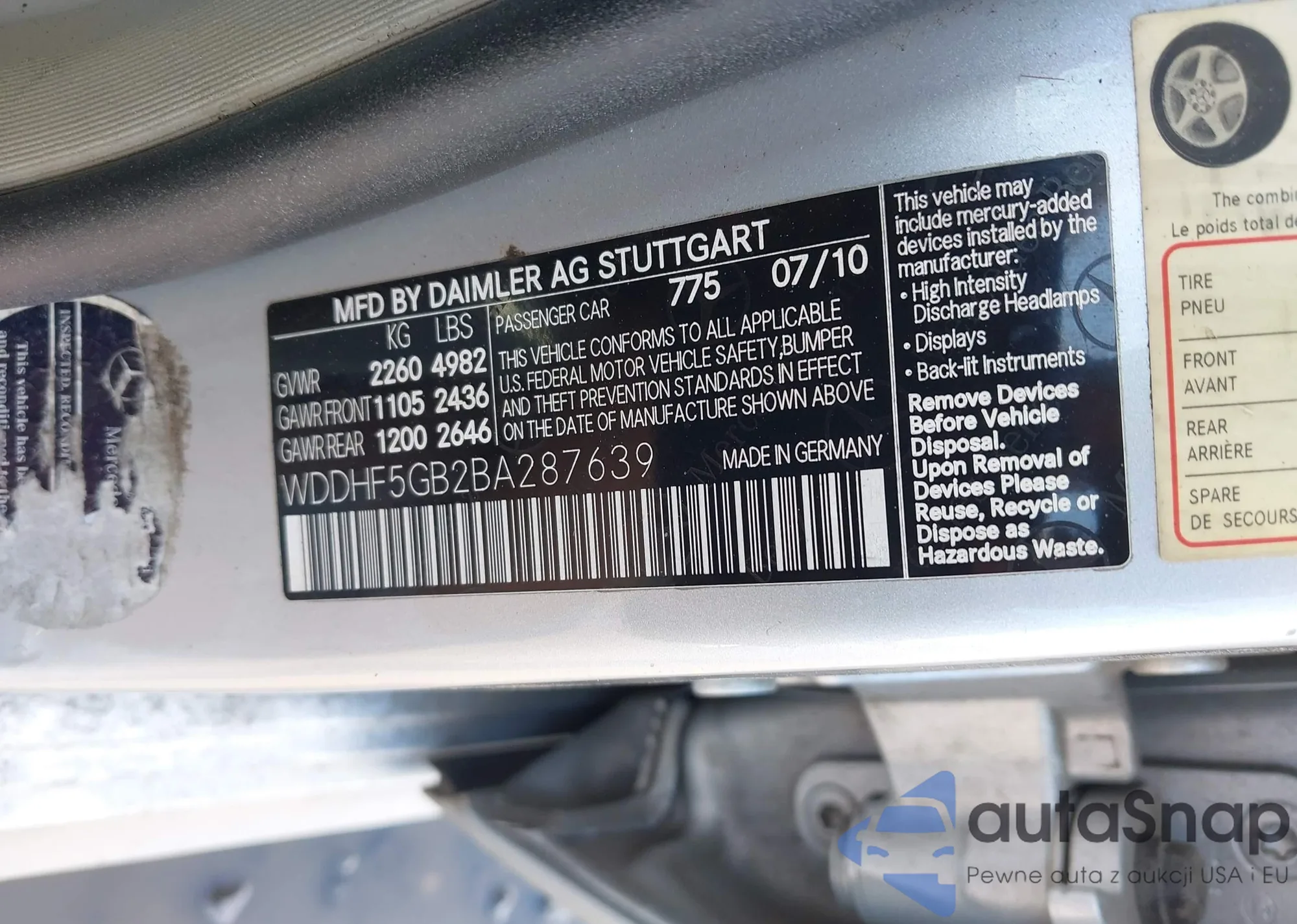 LOT: 42931280 VIN: WDDHF5GB2BA287639