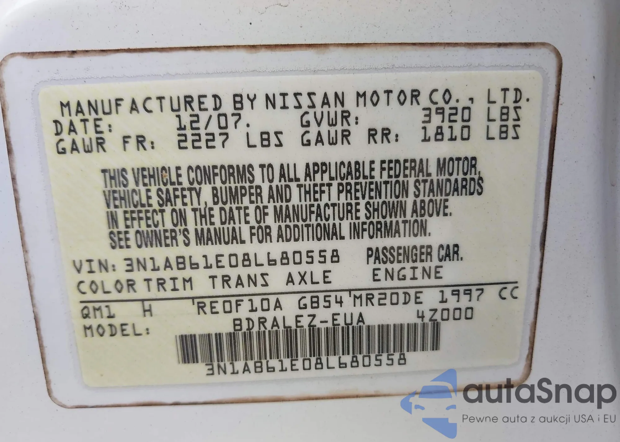 LOT: 42936743 VIN: JNRDR09Y43W304160