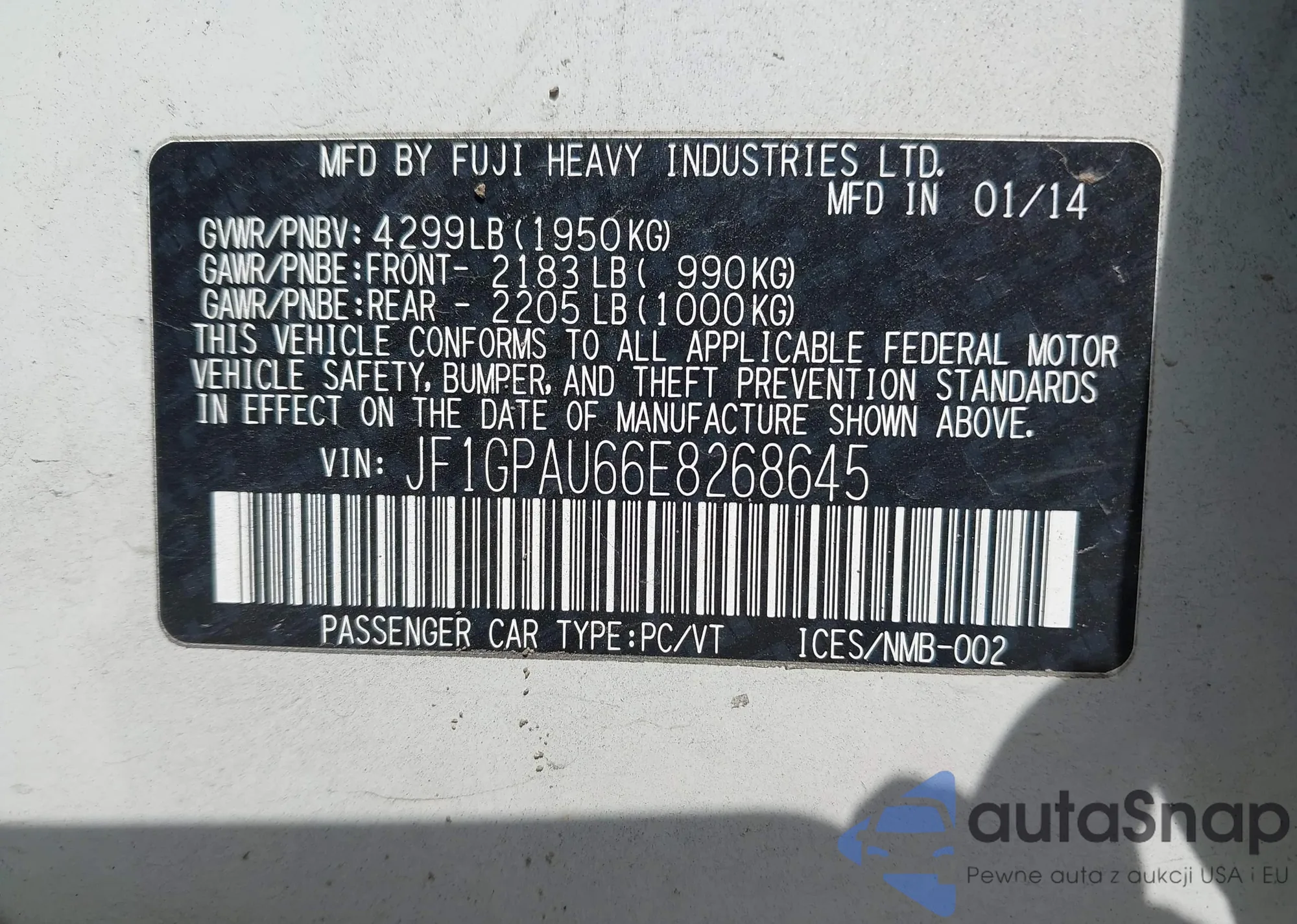 • VIN JF1GPAU66E8268645