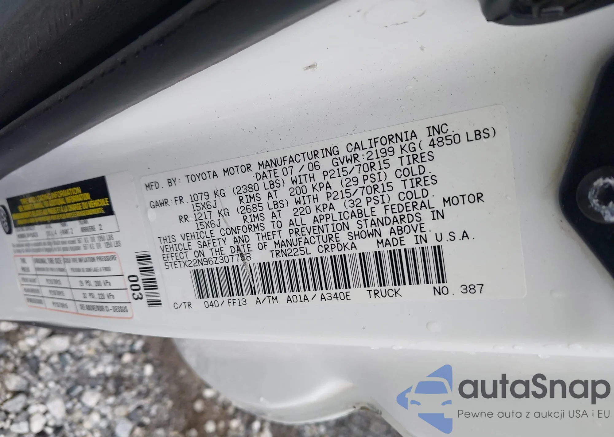 • VIN 5TETX22N96Z307768