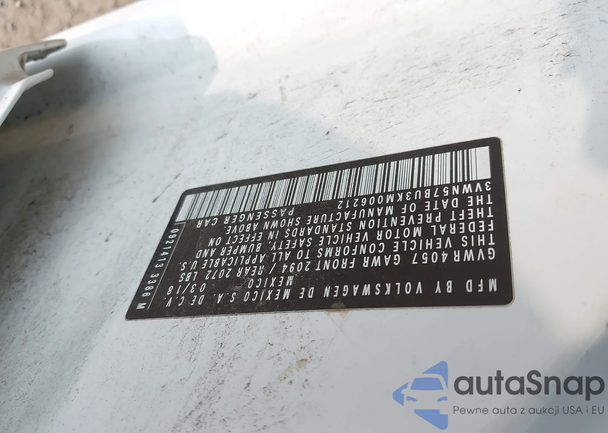 • VIN 3VWN57BU3KM006212