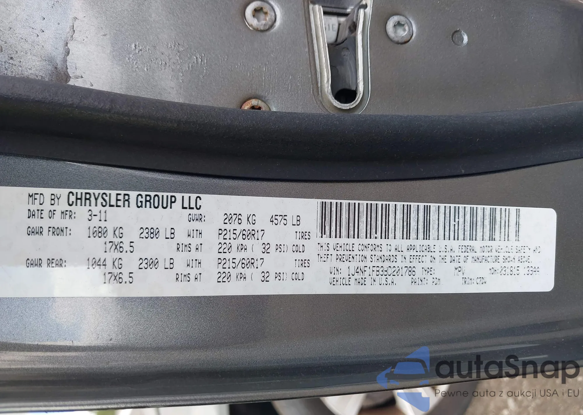 • VIN 1J4NF1FB3BD201786