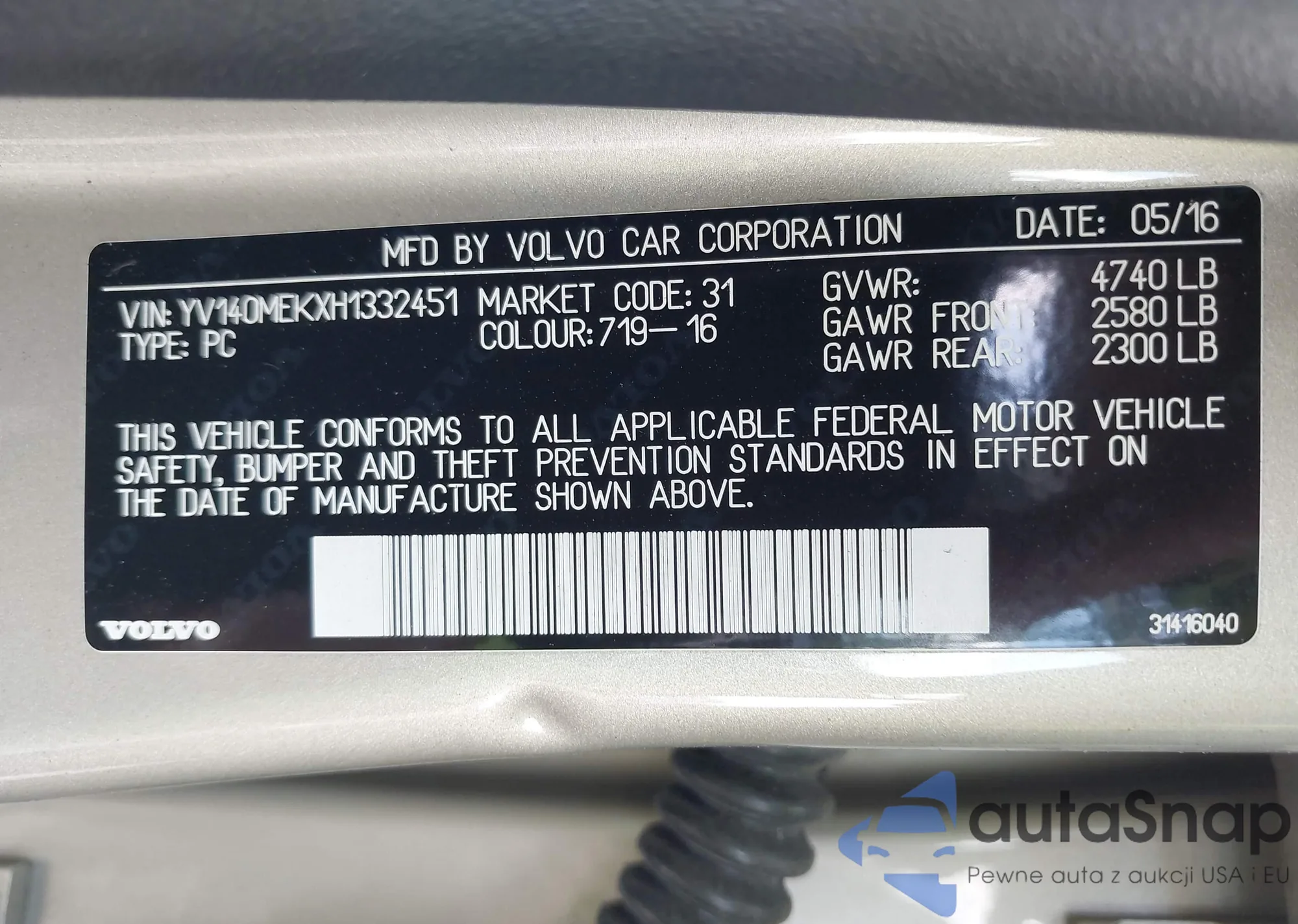 LOT: 43061504 VIN: WBAJA5C34HG456264