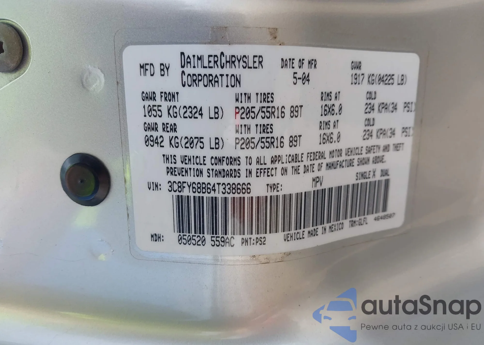 LOT: 43065759 VIN: 3C8FY68B64T338666