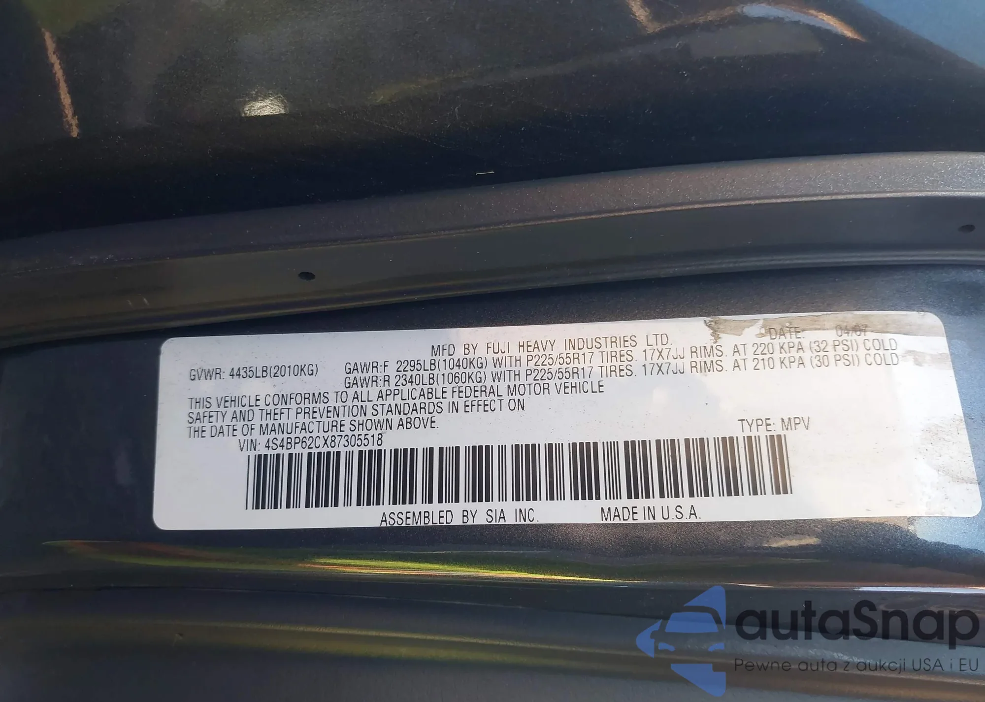 • VIN 4S4BP62CX87305518