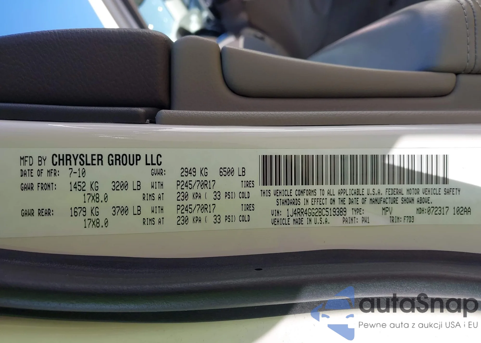 LOT: 43012806 VIN: 1J4NF1FB3BD201786