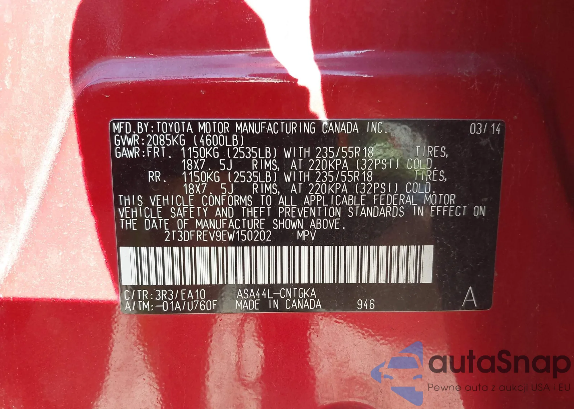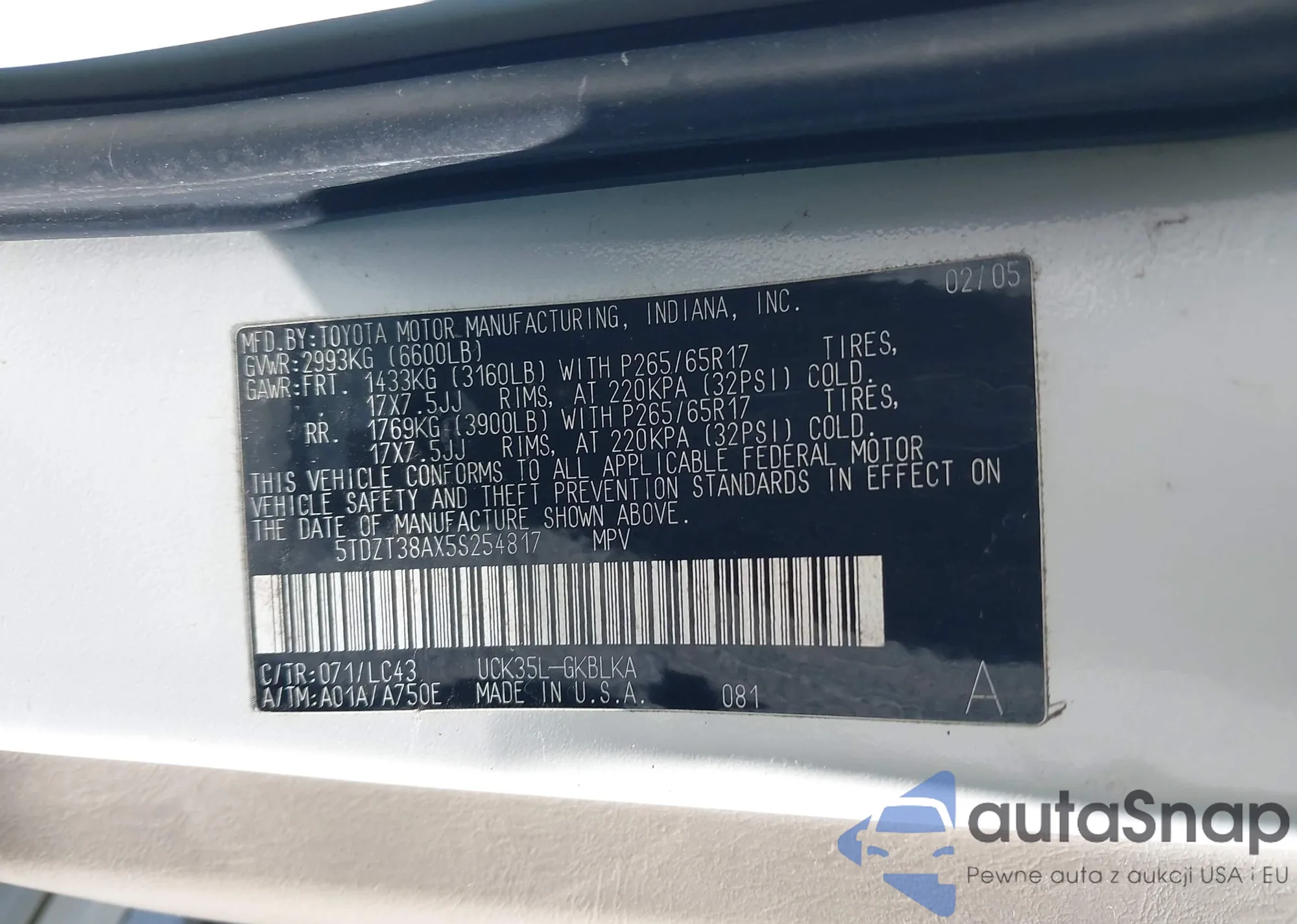 • VIN 5TDZT38AX5S254817