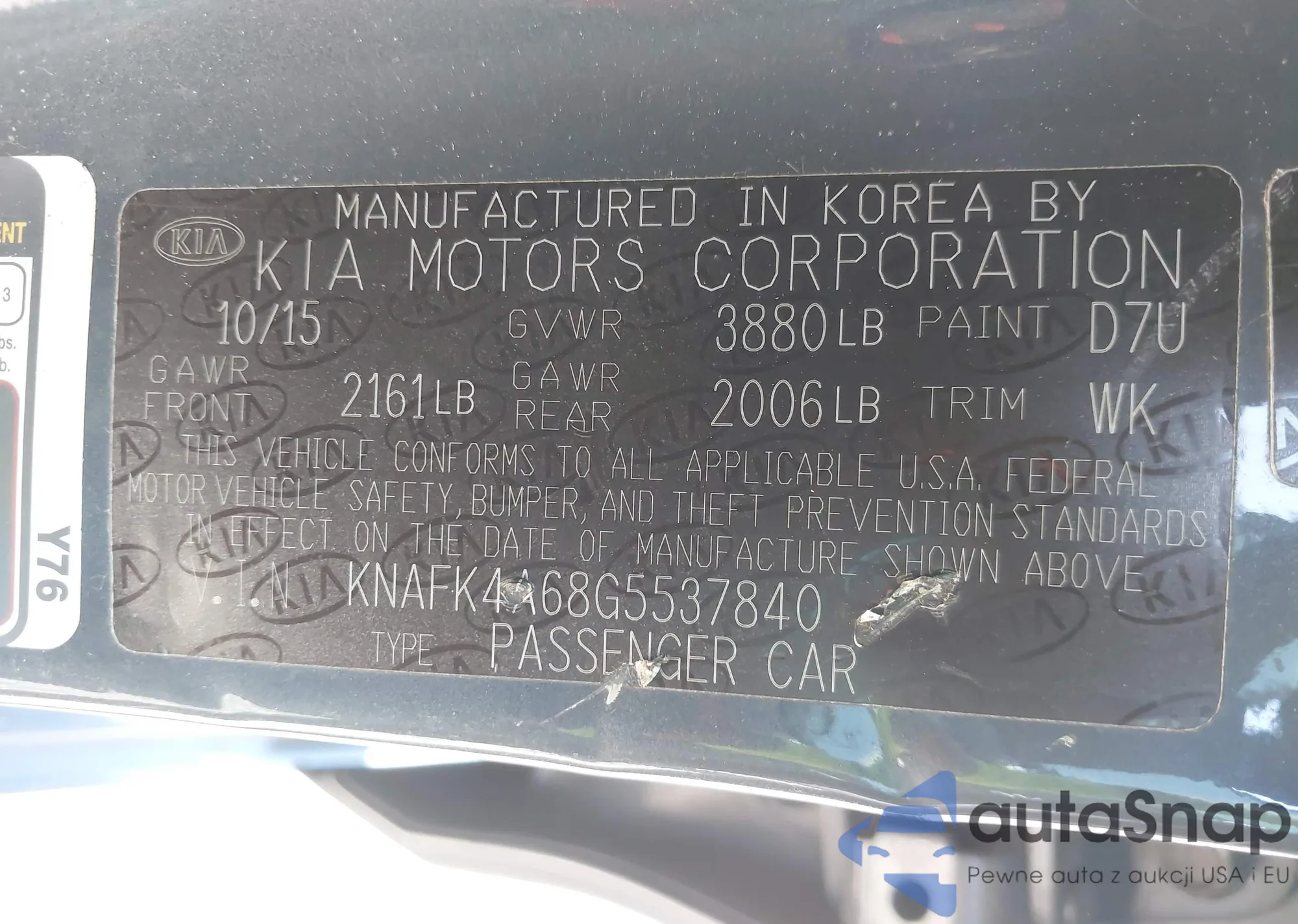 LOT: 43092534 VIN: KNAFK4A68G5537840