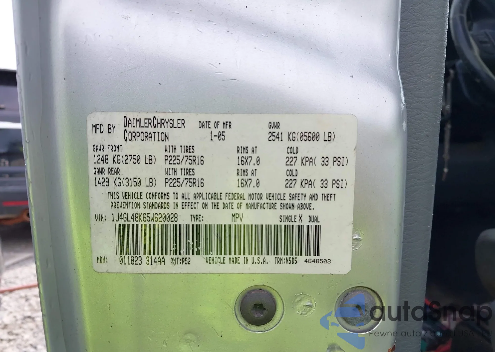 • VIN 1J4GL48K65W620028