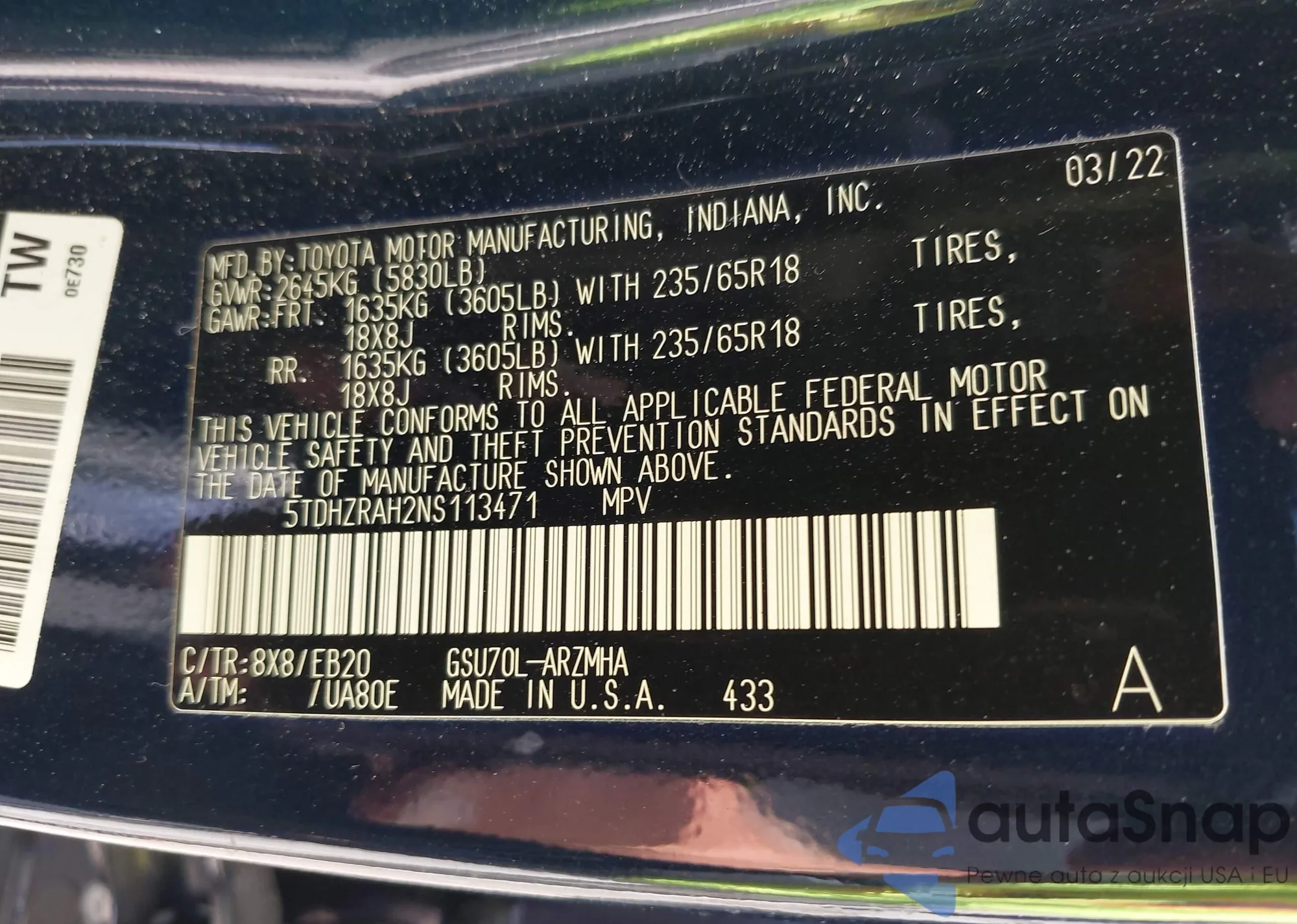 • VIN 5TDHZRAH2NS113471