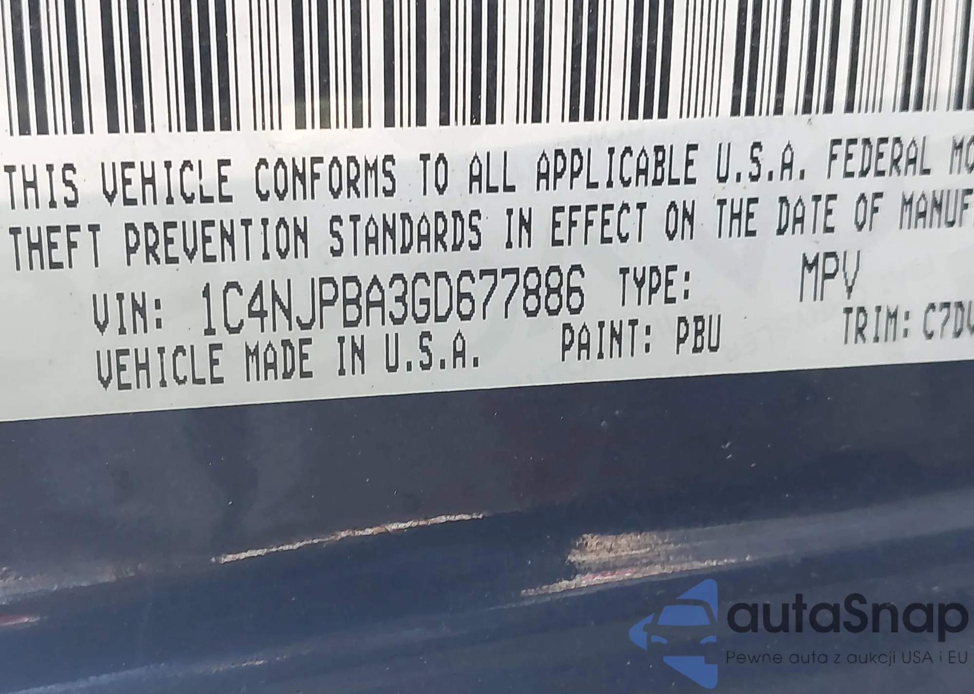 • VIN 1C4NJPBA3GD677886