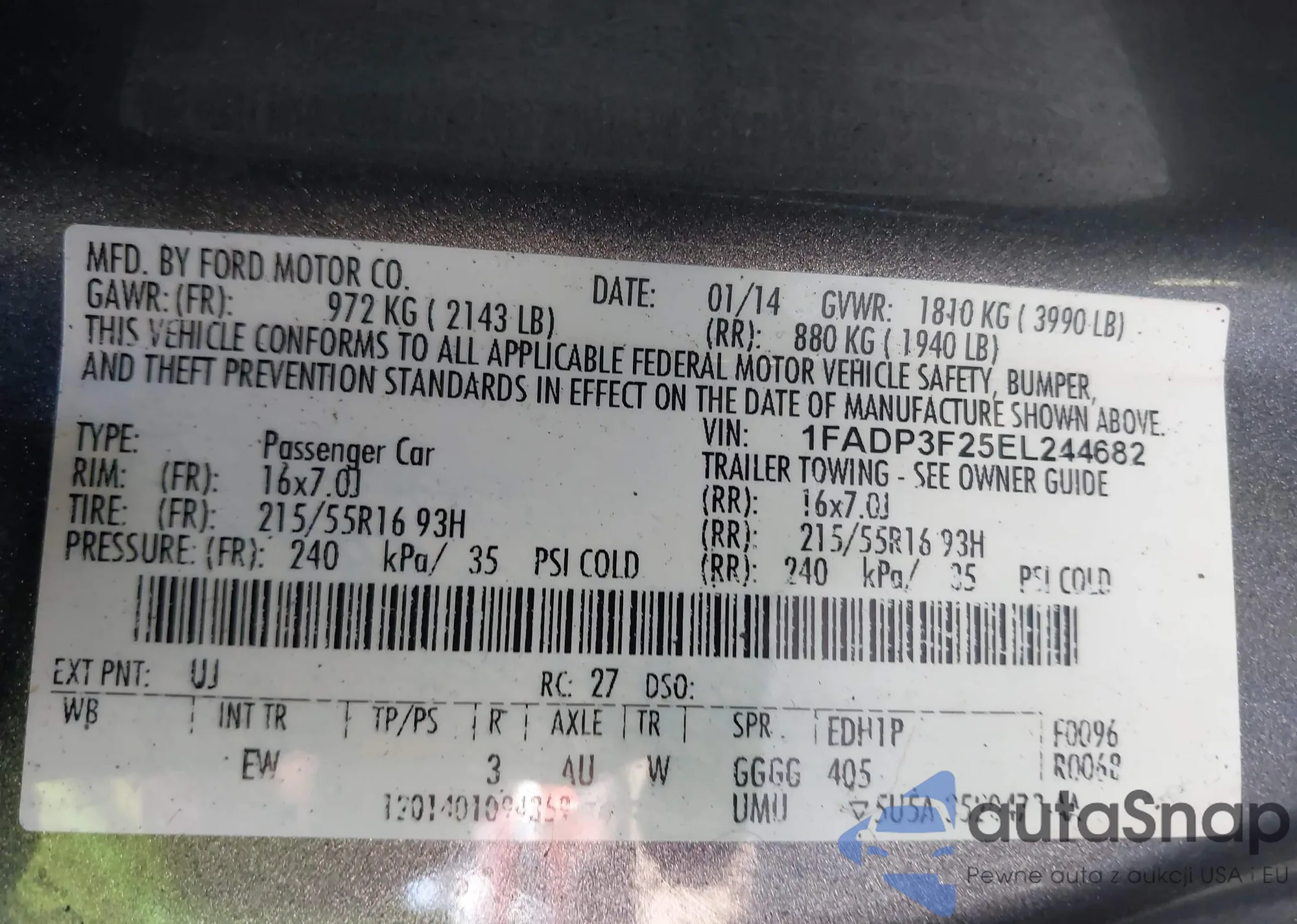 LOT: 43131831 VIN: 1FADP3F25EL244682