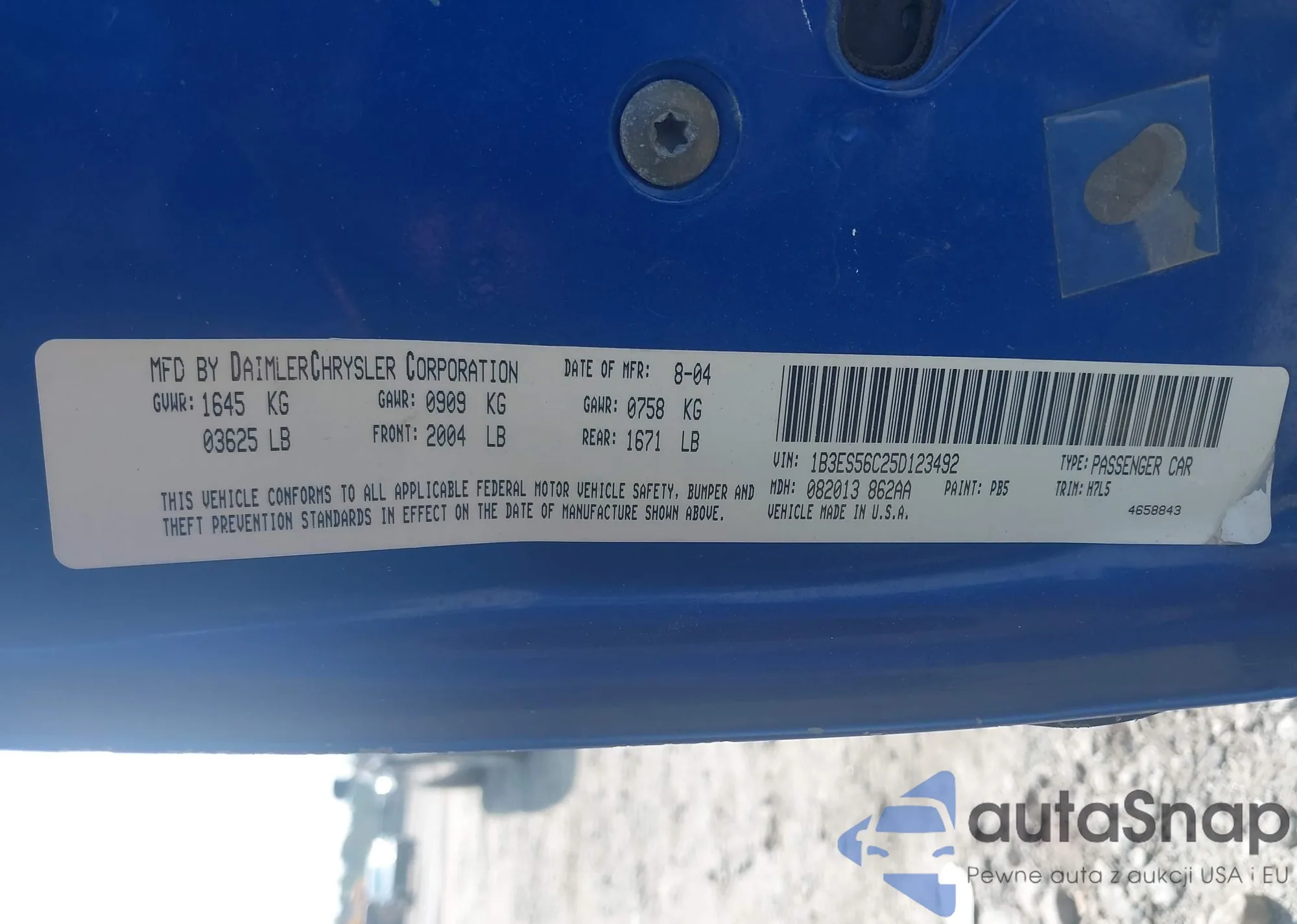LOT: 43025202 VIN: 1B3ES56C25D123492