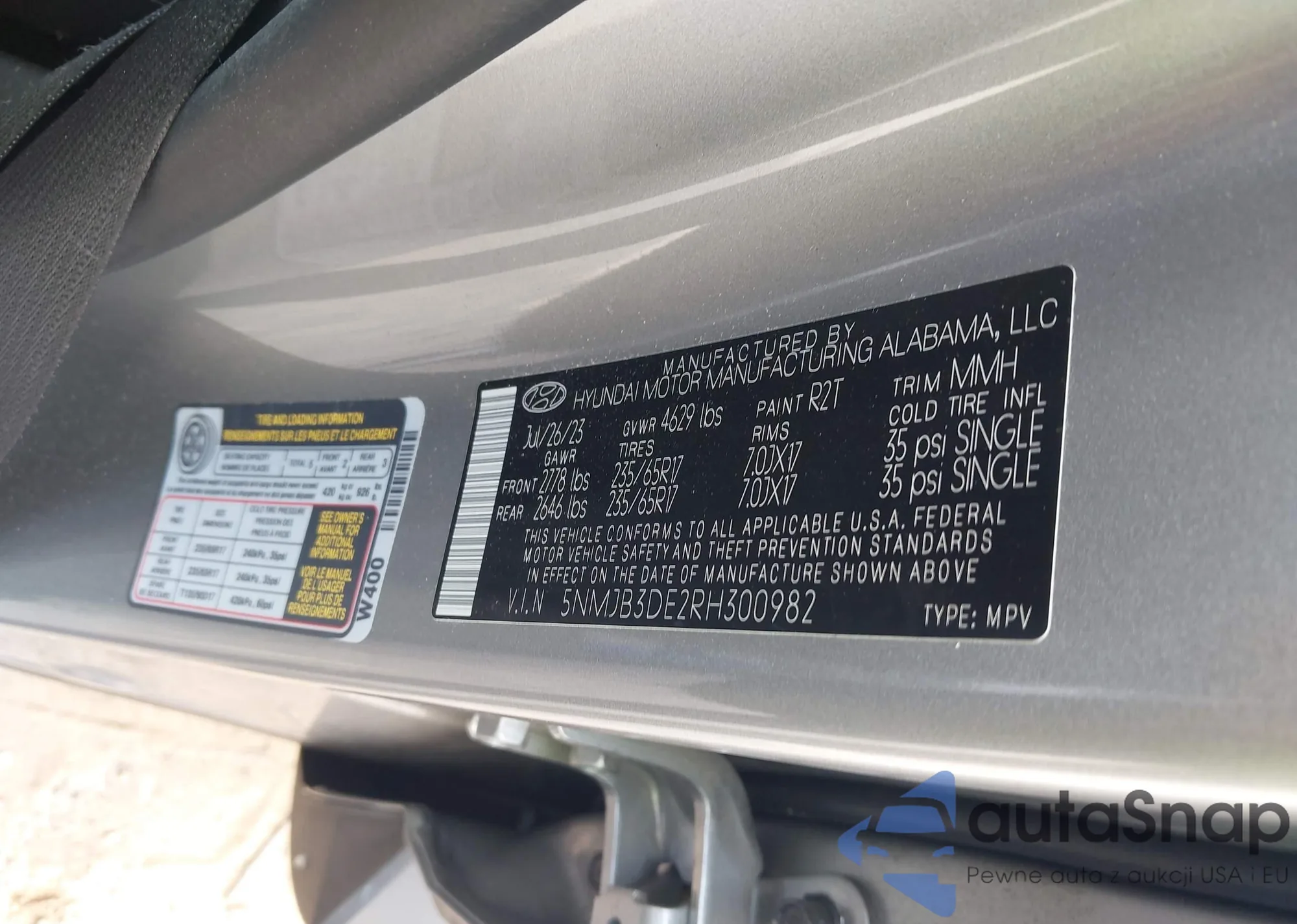 LOT: 43036104 VIN: 5NMJB3DE2RH300982