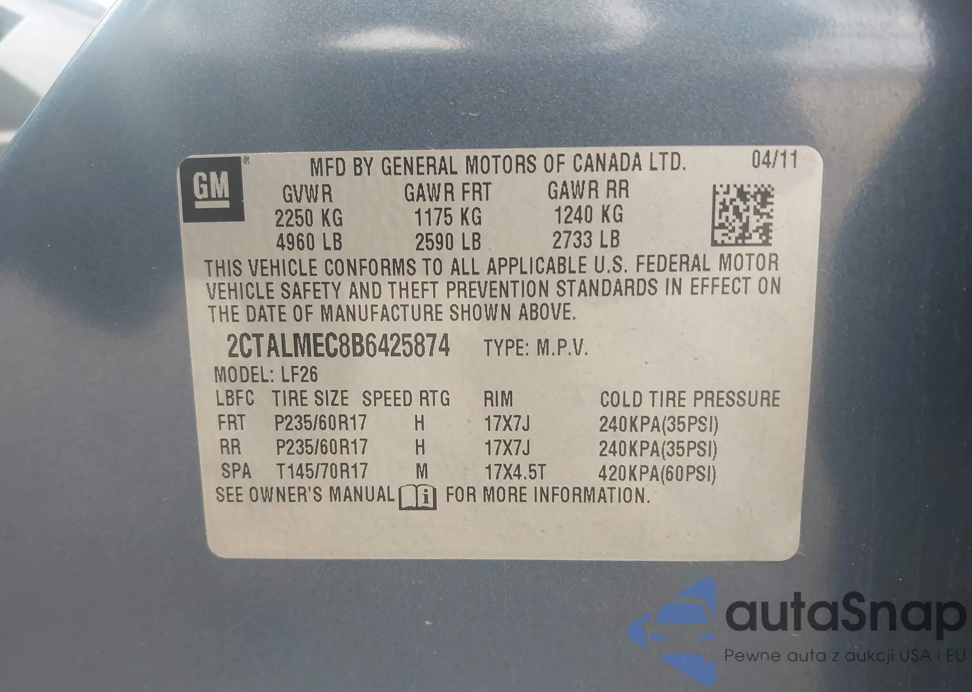 • VIN JF2GPACC7D2896203