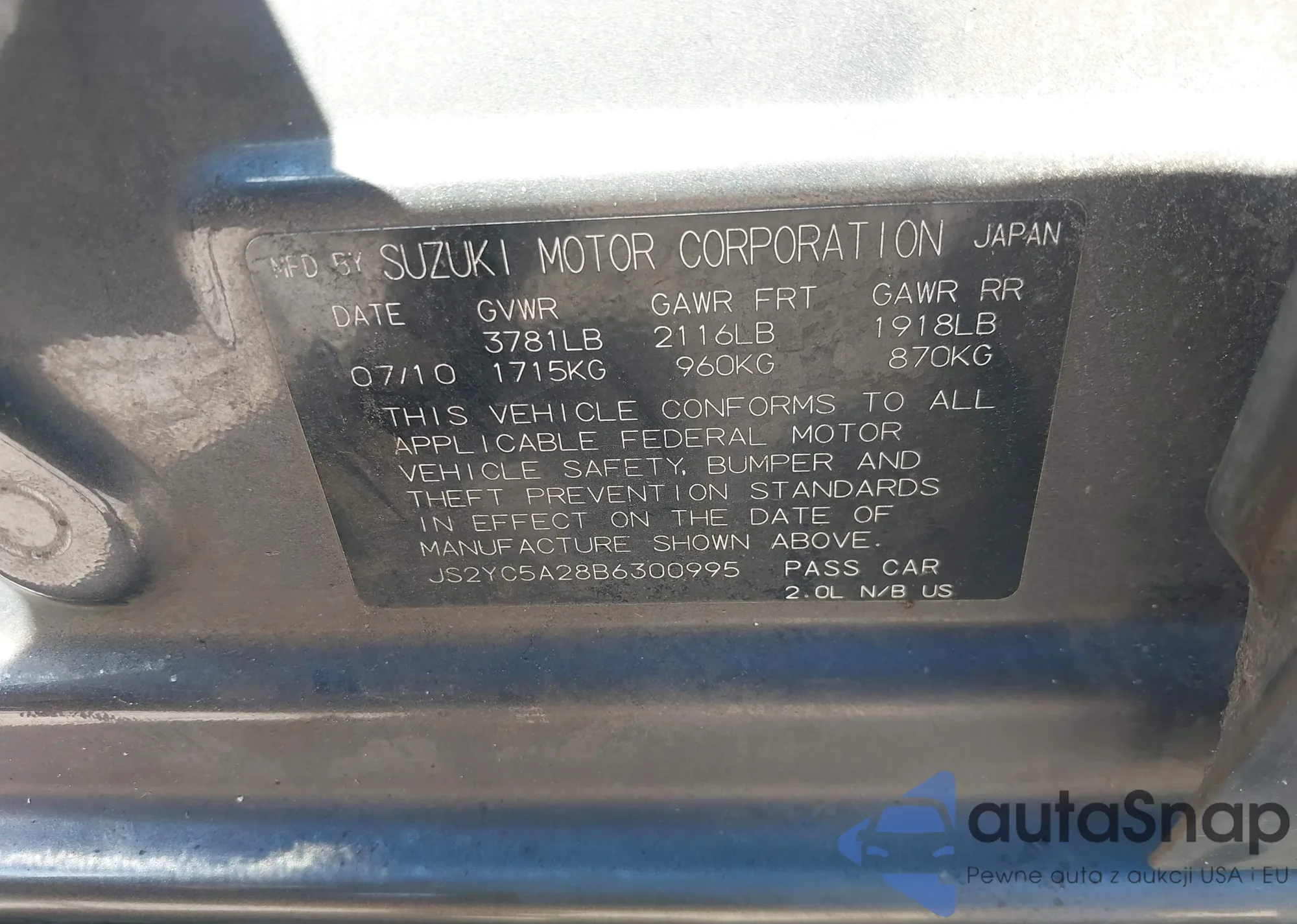 • VIN JS2YC5A28B6300995