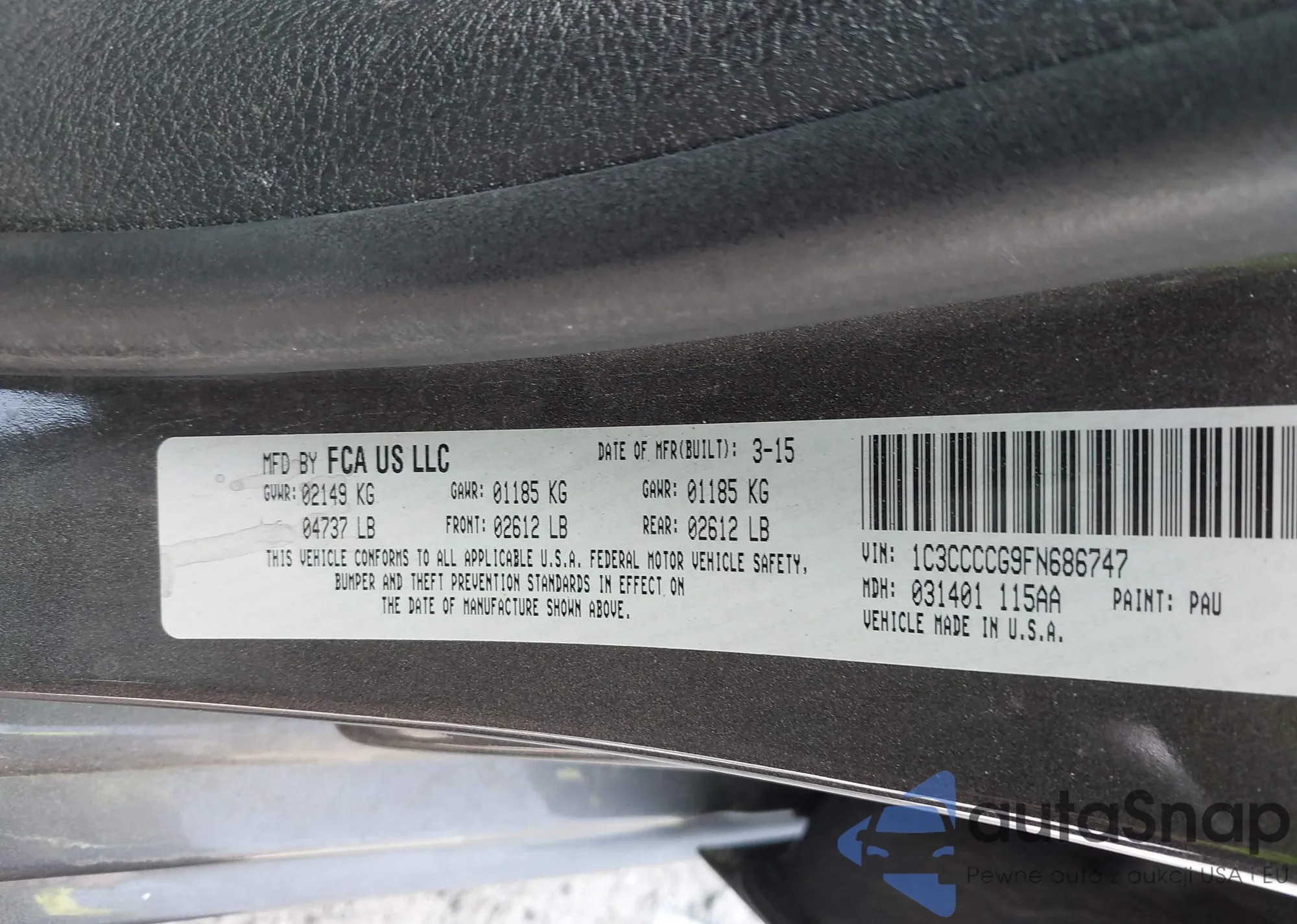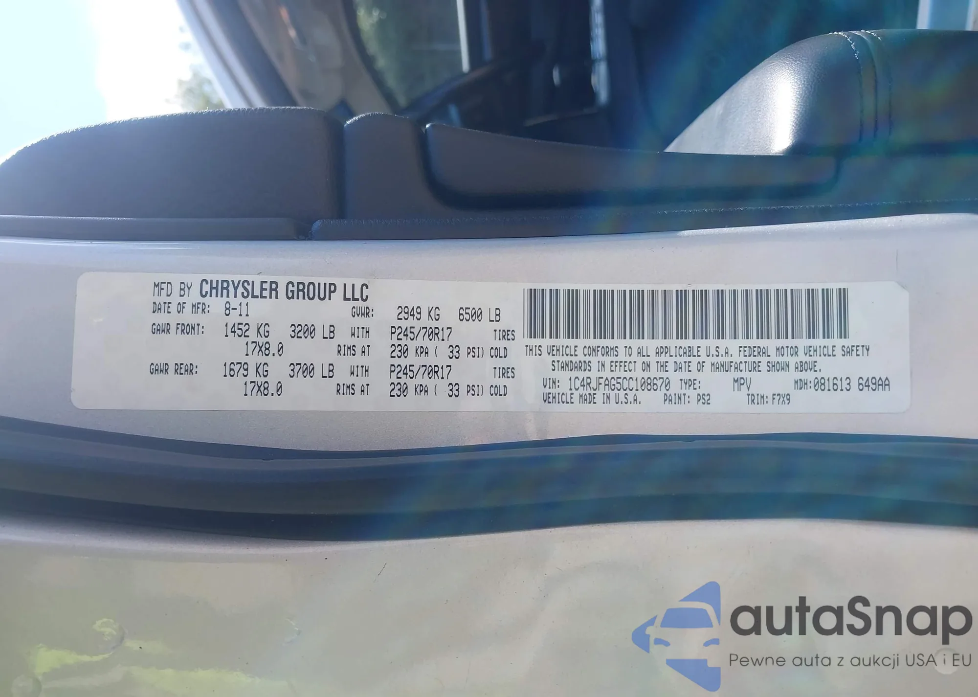 • VIN 1C4RJFAG5CC108670