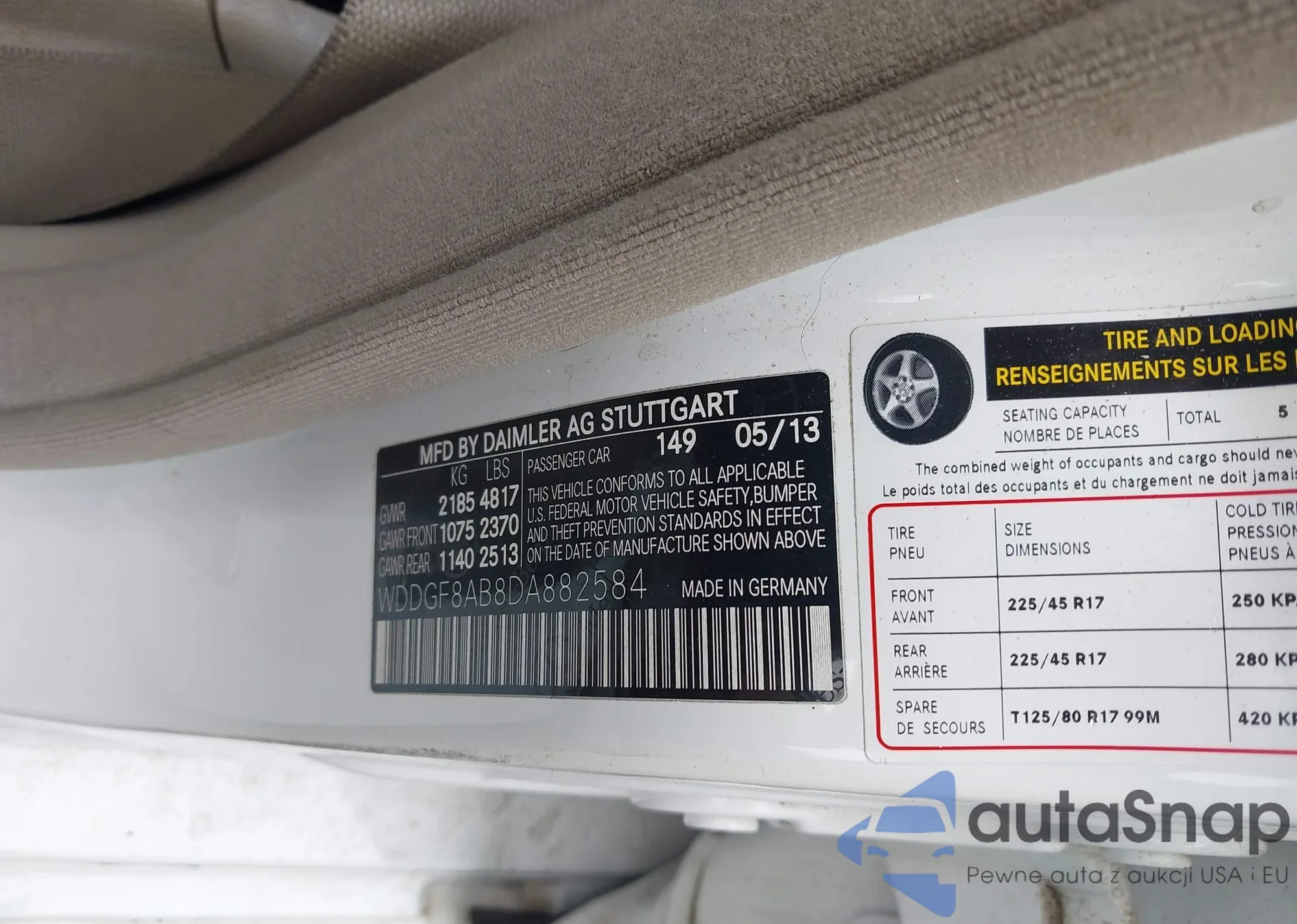 LOT: 42944314 VIN: WDDGF8AB8DA882584