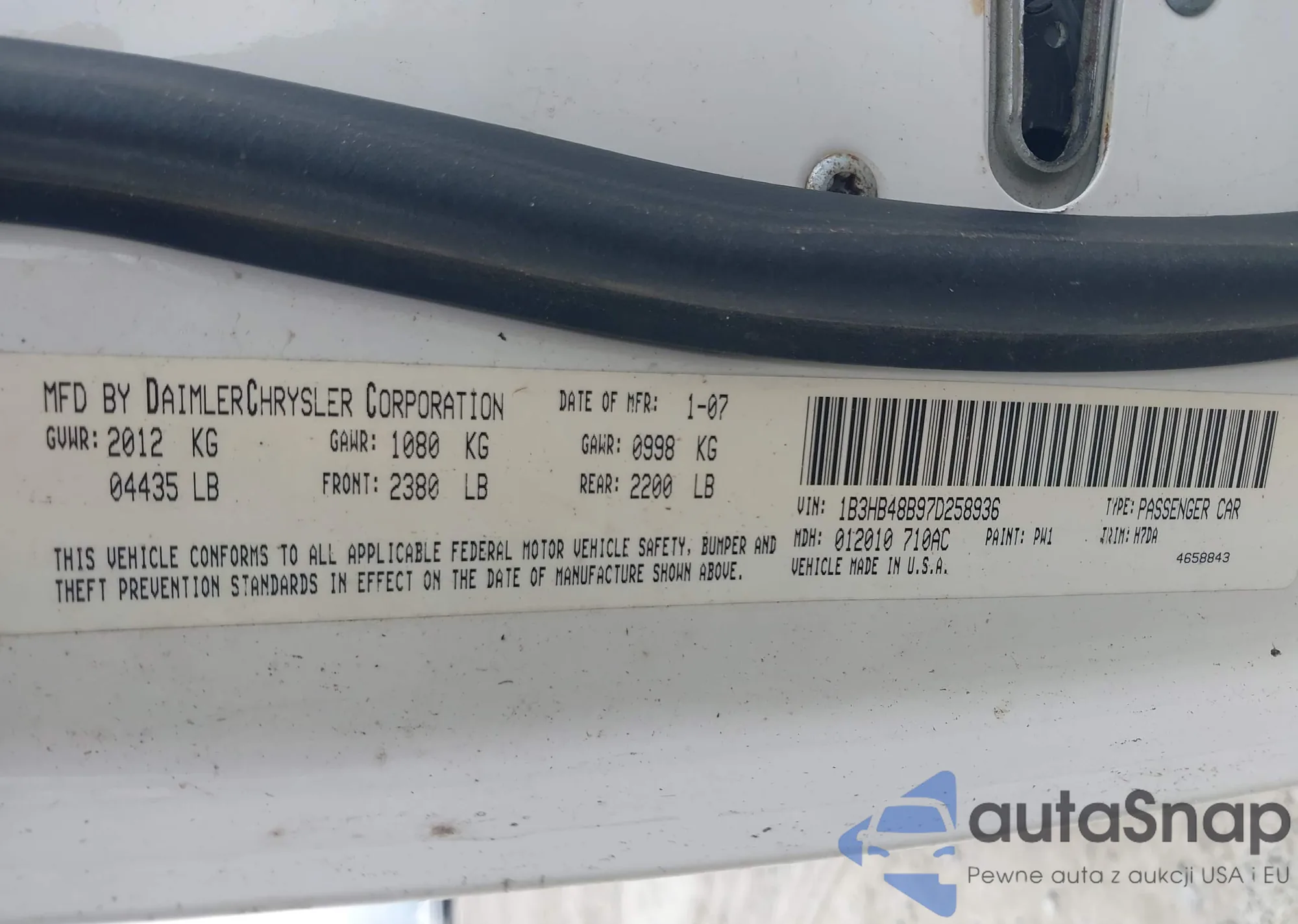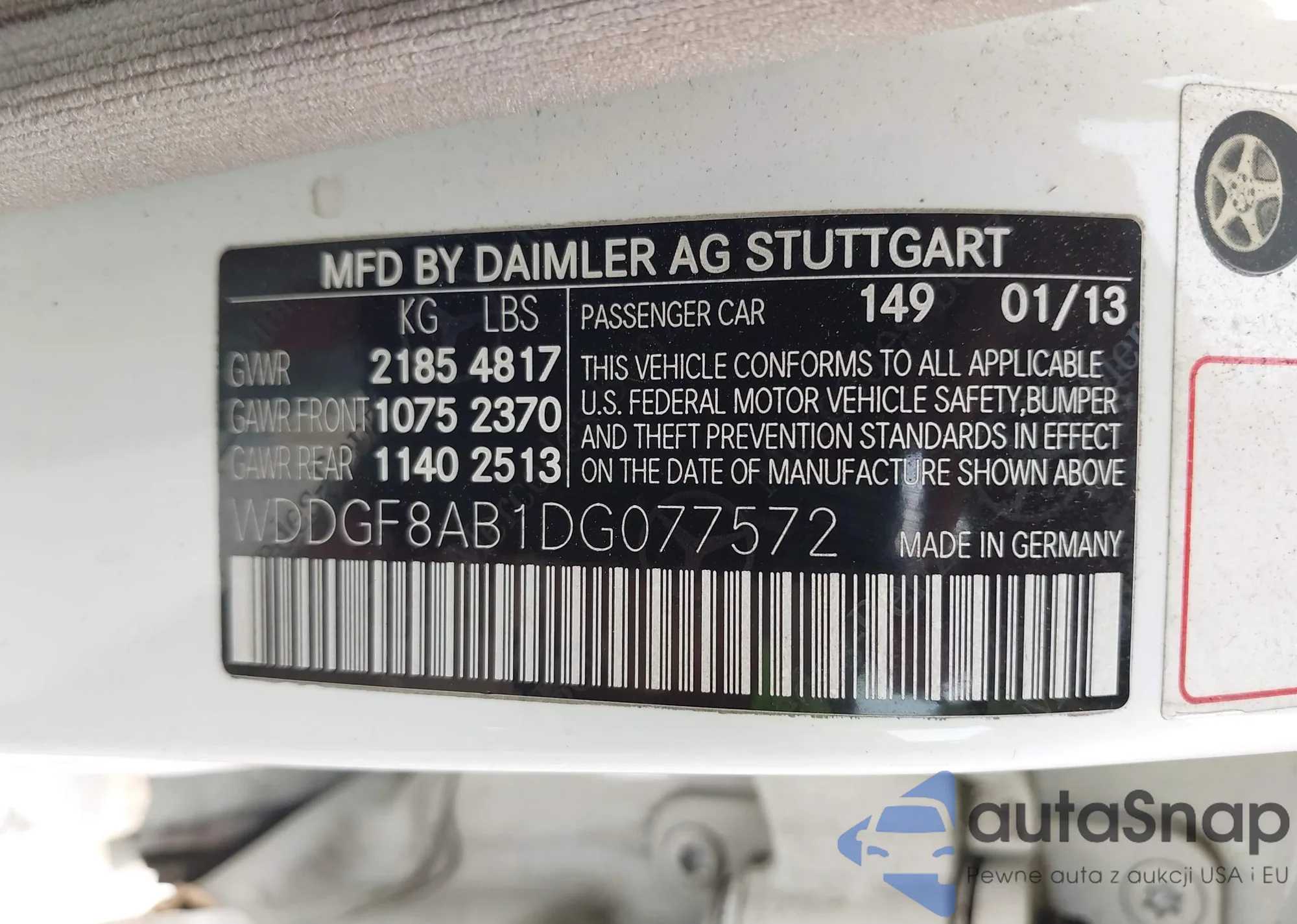 LOT: 42898442 VIN: WDDGF8AB1DG077572