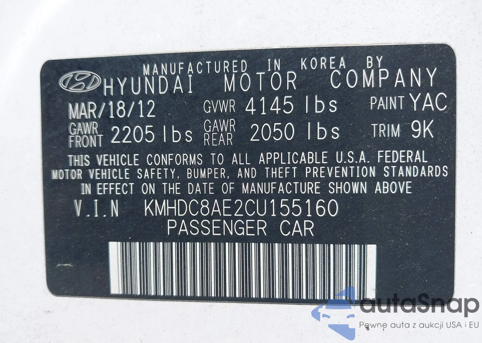 • VIN 5NPEB4AC1CH344525