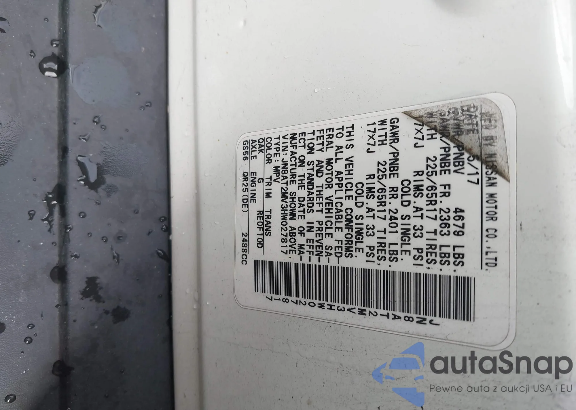 LOT: 42885011 VIN: JN8AT2MV3HW027817