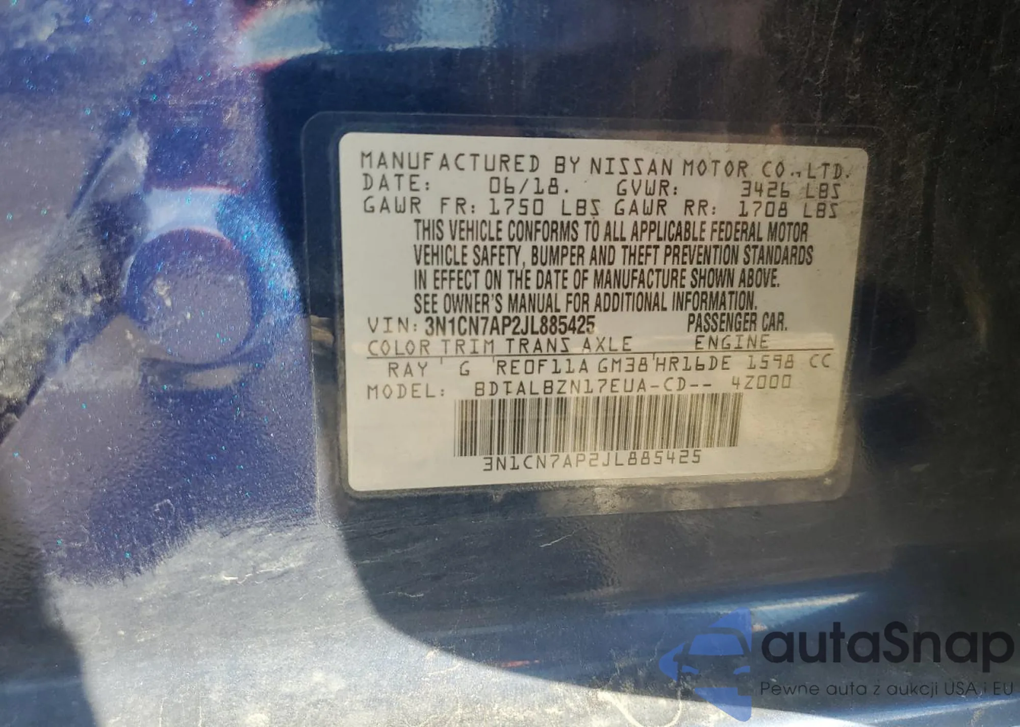 • VIN 3N1CN7AP2JL885425