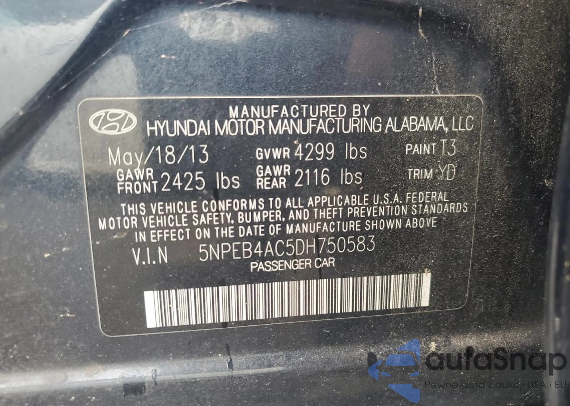 • VIN 5NPEB4AC5DH750583