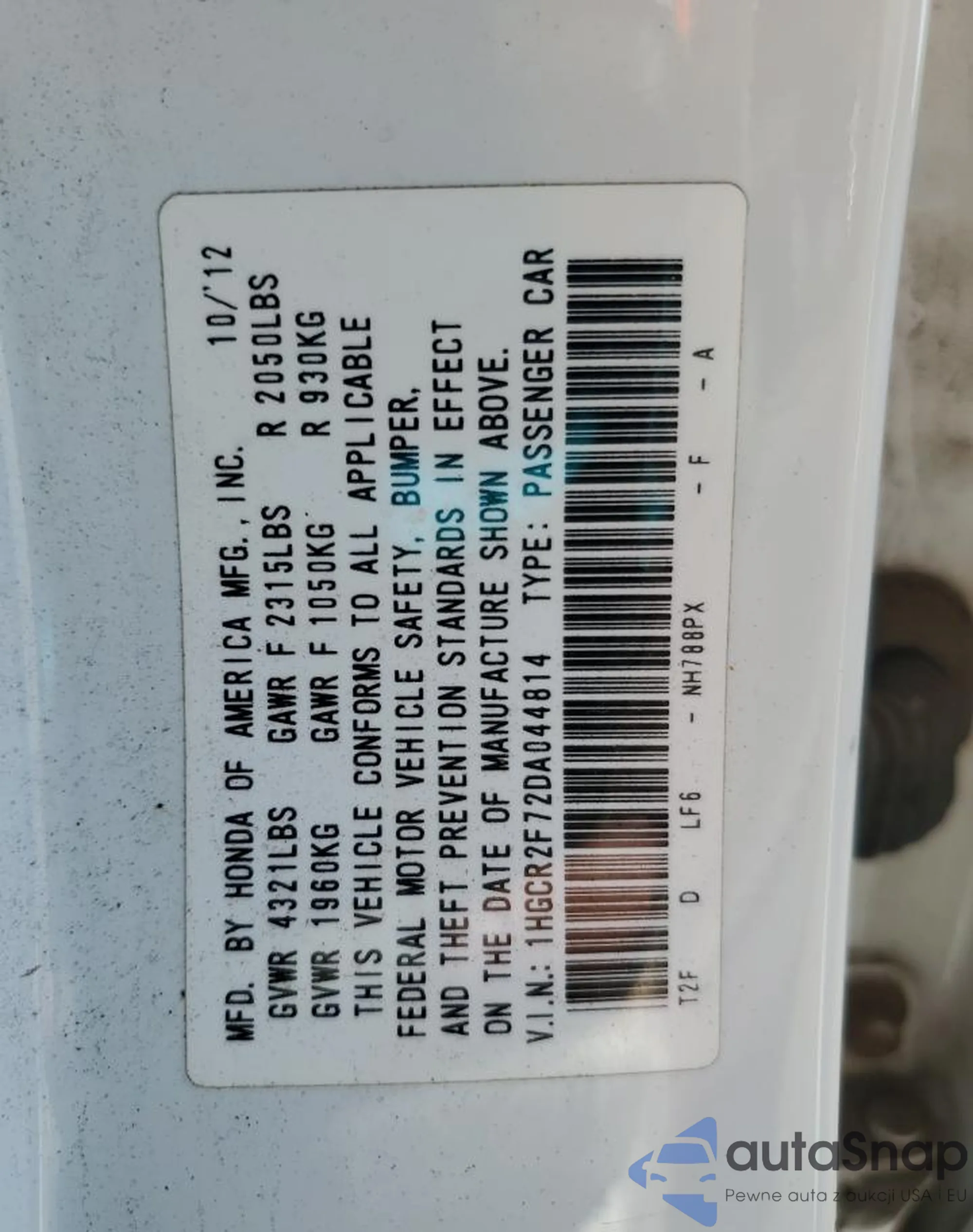 • VIN 1HGCR2F72DA044814