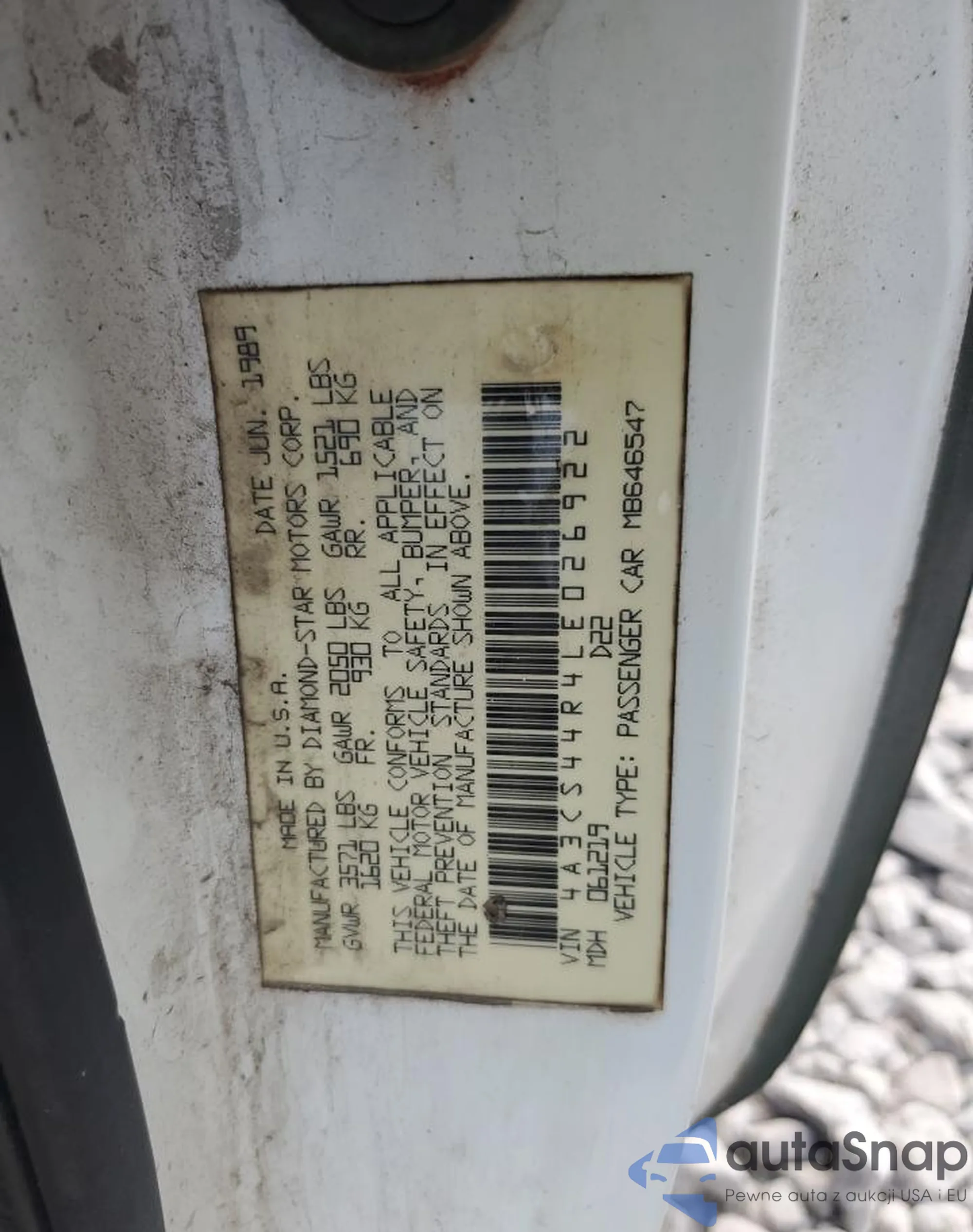 1990 Mitsubishi Eclipse Gs from USA, damaged, VIN 4A3CS44R4LE026922